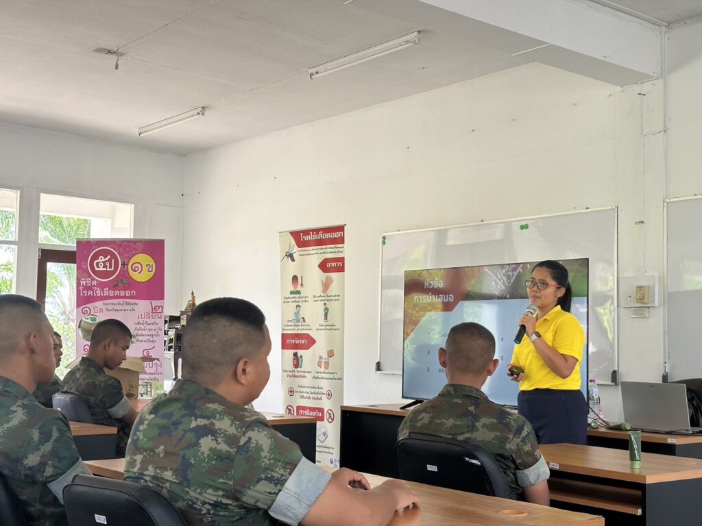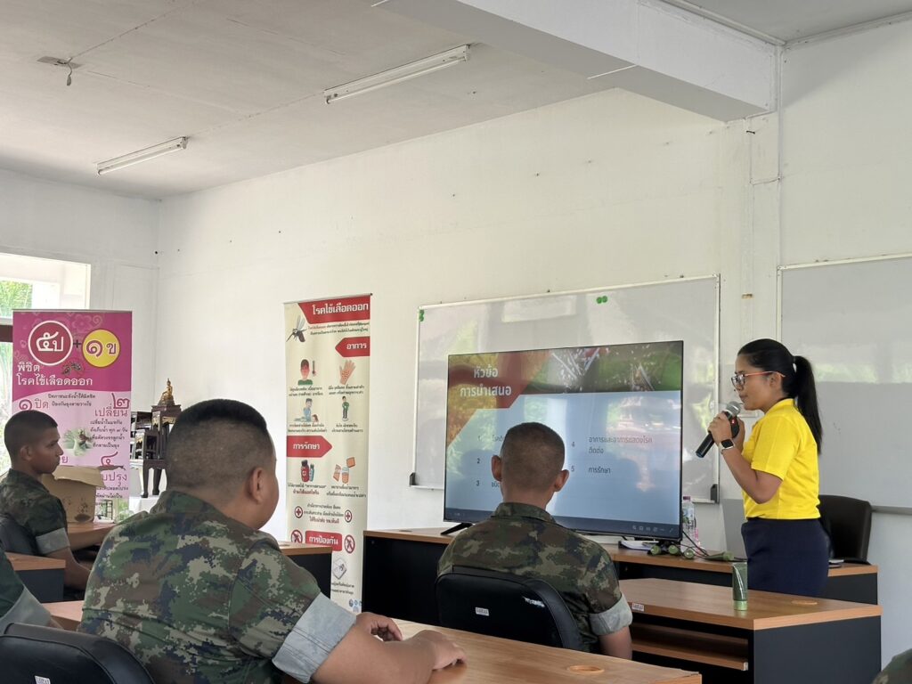 เมื่อ ๒๙ พ.ค.๖๗ รพ.ฐท.พง.ทรภ.๓ ดำเนินโครงเฝ้าระวังและป้องกันโรคติดต่อนำโดยยุงลายในกลุ่มทหารกองประจำการ พื้นที่ ทรภ.๓ บรรยายความรู้ และทักษะการป้องกัน และควบคุมโรคเบื้องต้น พร้อมทั้งสำรวจสภาพแวดล้อมที่เสี่ยงต่อการเกิดโรค (ระยะก่อนเกิดการระบาดของโรค) ให้แก่ ทหารกองประจำการ สังกัด ศรภ.ฐท.พง.ทรภ.๓ ณ ศรภ.ฐท.พง.ทรภ.๓ / รพ.ฐท.พง.ทรภ.๓ / By ข่าวผู้บังคับบัญชา จำนวนคนดู : 8