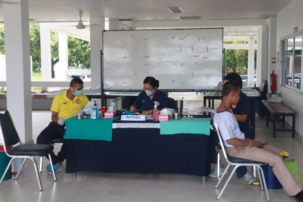 เมื่อ ๒๖ มิ.ย.๖๗ รพ.ฐท.พง.ทรภ.๓ ดำเนินการฉีดวัคซีนป้องกันโรคไข้หวัดใหญ่ และบรรยายความรู้และฝึกทักษะการป้องกันโรคไข้หวัดใหญ่ ในการนี้ พล.ร.ต.กนกพล พิมพ์ทอง ผบ.ฐท.พง.ทรภ.๓ พร้อมด้วยนายทหารชั้นผู้ใหญ่ เข้าเยี่ยมให้กำลังใจ กลุ่มทหารกองประจำการ ตามโครงการ “เฝ้าระวังสุขภาพของกำลังพลและครอบครัว” (Good Home Good Health) ณ รพ.ฐท.พง.ทรภ.๓ / รพ.ฐท.พง.ทรภ.๓ / By ข่าวผู้บังคับบัญชา จำนวนคนดู : 6