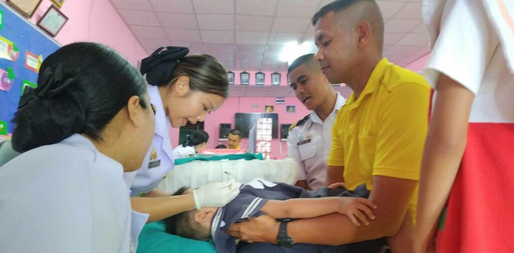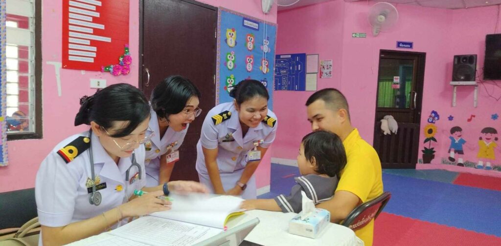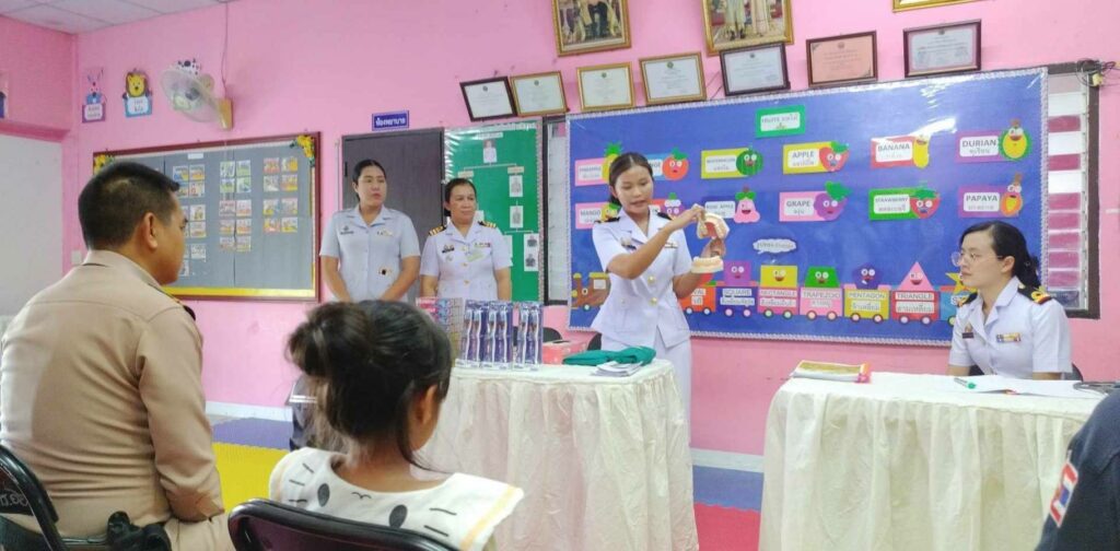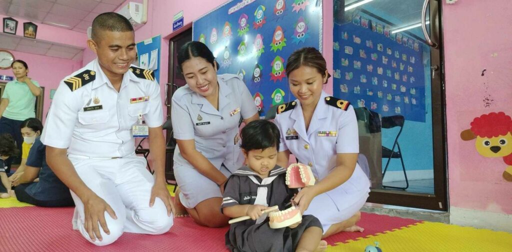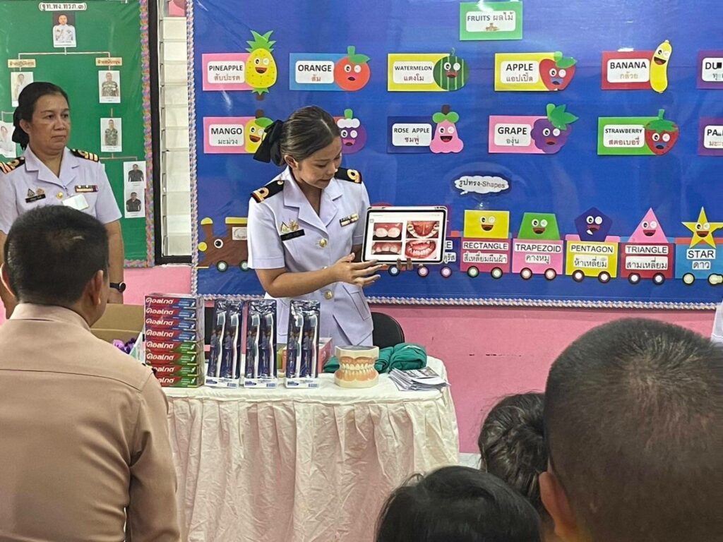 เมื่อ ๑๘ ก.ค.๖๗ แผนกตรวจผู้ป่วยนอก ร่วมกับ แผนกทันตกรรม รพ.ฐท.พง.ทรภ.๓ จัดกิจกรรมตรวจคัดกรองภาวะสุขภาพ และสุขภาพช่องปาก ให้ความรู้เรื่องการล้างมือ การดูแลสุขภาพฟัน แก่เด็ก และผู้ปกครอง ณ สถานรับเลี้ยงเด็กปฐมวัย ทร. ที่ ๑๖