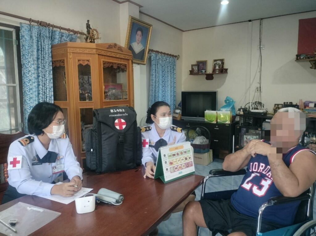 เมื่อ ๓๑ ม.ค.๖๘ รพ.ฐท.พง.ทรภ.๓ เข้าเยี่ยมบ้านครอบครัวกำลังพล สังกัด กรง.ฐท.พง.ทรภ.๓ ป่วยด้วยโรคอัมพาต ไต ควมดันโลหิตสูง และไขมันในเลือดสูง โดยให้คำแนะนำเกี่ยวกับการดูแลผู้ป่วยติดเตียง ตามมาตรฐานสถานพยาบาลปฐมภูมิ บ้านครอบครัวกำลังพล สังกัด กรง.ฐท.พง.ทรภ.๓ พื้นที่ ม.๑ ต.ลำแก่น อ.ท้ายเหมือง จว.พังงา / รพ.ฐท.พง.ทรภ.๓ / By ข่าวผู้บังคับบัญชา จำนวนคนดู : 8