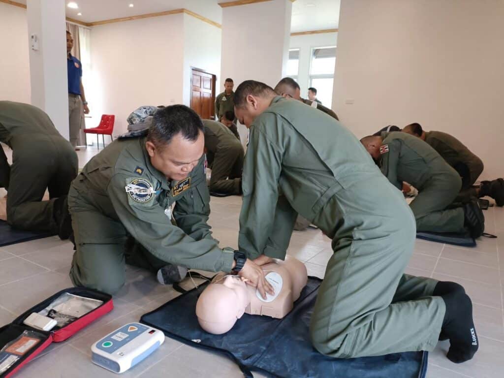 เมื่อ ๘ ก.ค.๖๘ รพ.ฐท.พง. ทรภ.๓ จัดการฝึกอบรมการปฐมพยาบาลการกู้ชีพขั้นพื้นฐาน (CPR) และการใช้เครื่อง AED ให้แก่ กำลังพล มวบ.กปก.ทรภ.๓ เพื่อทบทวนความรู้และเพิ่มพูนทักษะฯ ณ อาคารรับรอง มวบ.กปก.ทรภ.๓ / รพ.ฐท.พง.ทรภ.๓ / By ข่าวผู้บังคับบัญชา จำนวนคนดู : 0