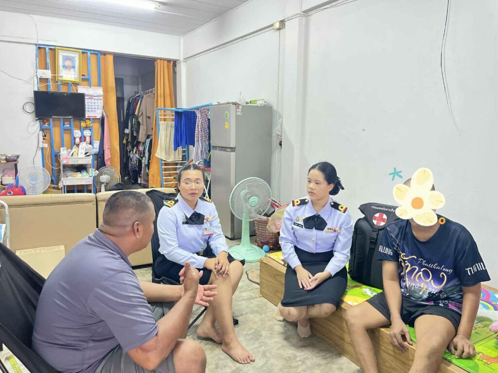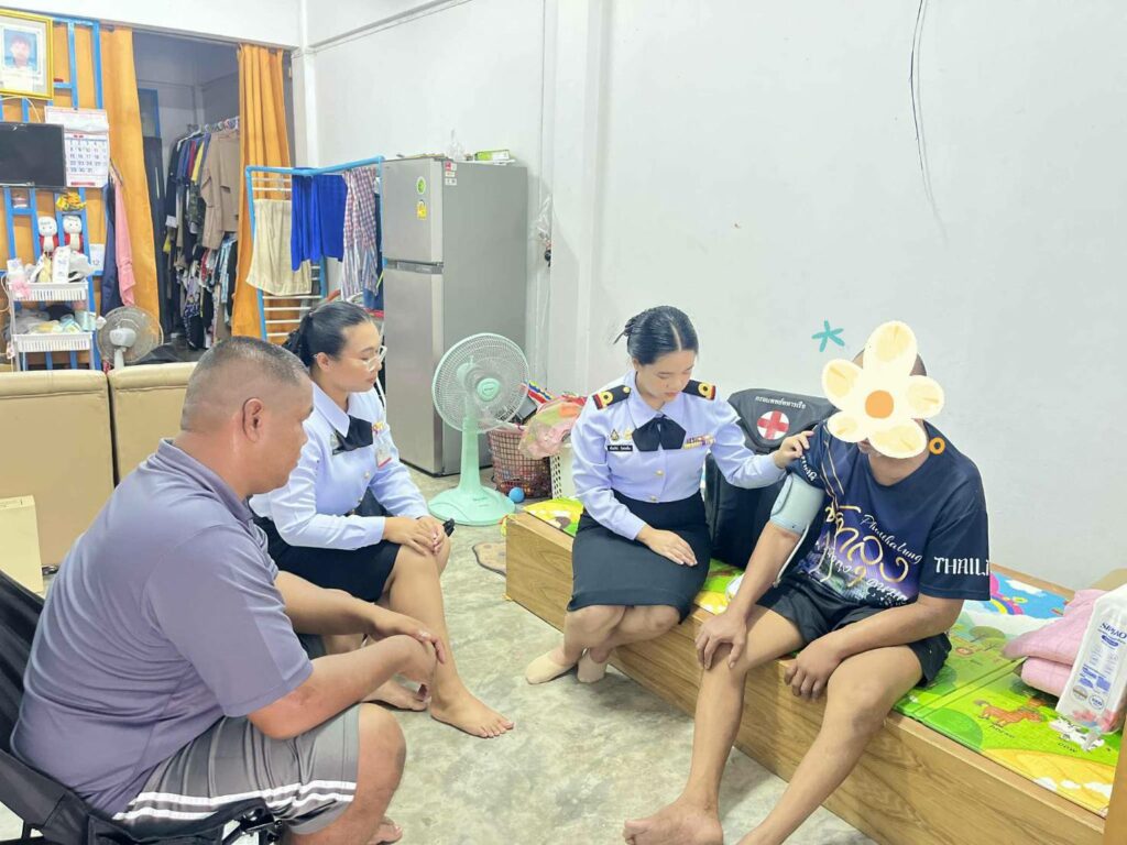 เมื่อ ๒๐ ส.ค.๖๘ ว่าที่ ร.ต.หญิงศรัณยรัตน์ จันทร์เหลือง รรก.รอง ผอ.รพ.ฐท.พง.ทรภ.๓ และ แผนกผู้ป่วยใน รพ.ฯ ออกหน่วยเยี่ยมบ้านครอบครัวของกำลังพล สังกัด สห.ทร.ที่ ๔ ซึ่งป่วยด้วยโรคหลอดเลือดสมองตีบ (Ischemic Stroke) เพื่อให้การดูแลและสนับสนุนการฟื้นฟูสุขภาพของผู้ป่วยอย่างต่อเนื่อง รวมถึงการส่งเสริมกำลังใจแก่ผู้ป่วยและครอบครัว ตามมาตรฐานสถานพยาบาลปฐมภูมิ ทร.