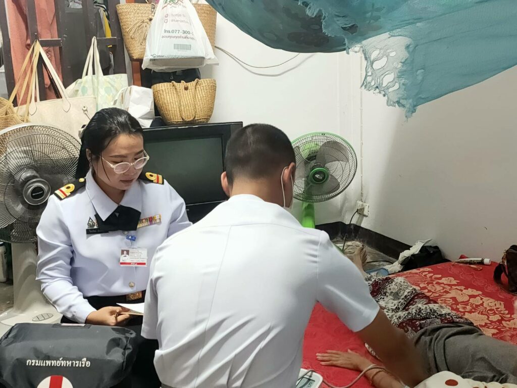 เมื่อ ๒๗ พ.ย.๖๘ ว่าที่ ร.ต.หญิง พัณณิตา พิริยะวิรุตม์ รรก.หน.ตรวจผู้ป่วยนอก รพ.ฐท.พง.ทรภ.๓ และคณะเยี่ยมบ้านครอบครัวกำลังพลสังกัด กรง.ฐท.พง.ทรภ.๓ ซึ่งป่วยด้วยโรคติดเชื้อที่ลำคอ เพื่อให้การดูแลรักษาผู้ป่วยอย่างต่อเนื่อง แนะนำการดูแลสุขภาพ การไปตรวจตามแพทย์นัด และวางแผนการดูแลสุขภาพในระยะยาว เพื่อเสริมสร้างคุณภาพชีวิตที่ดีให้กับผู้ป่วย / รพ.ฐท.พง.ทรภ.๓ / By ข่าวผู้บังคับบัญชา จำนวนคนดู : 0
