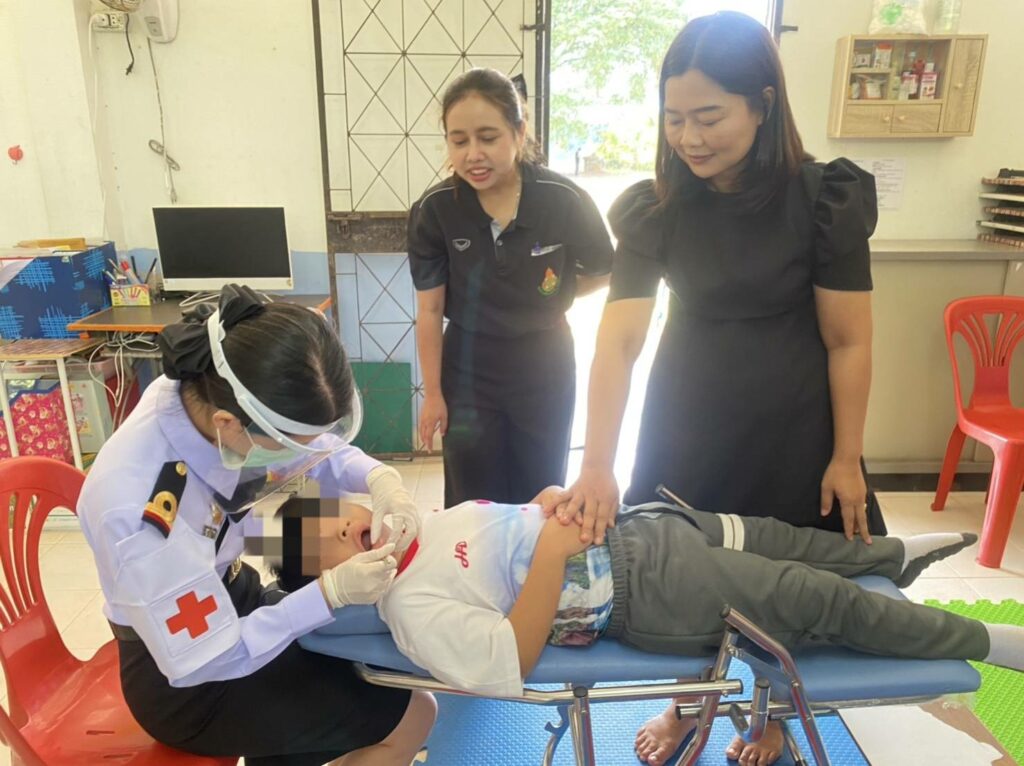 เมื่อ ๑๗ ก.พ.๖๙ น.อ.สุทธิใจ ใยทอง ผอ.รพ.ฐท.พง. ทรภ.๓ มอบหมายให้ ว่าที่ ร.ต.หญิง นภัสกร นาควิจิตร ทันตแพทย์ แผนกทันตกรรมและกำลังพล รพ.ฯ สนับสนุนการตรวจสุขภาพช่องปากและฟันแก่นักเรียน ณ ศูนย์การศึกษาพิเศษ จว.พังงา หน่วยบริการท้ายเหมือง / รพ.ฐท.พง.ทรภ.๓ / By ข่าวผู้บังคับบัญชา จำนวนคนดู : 0