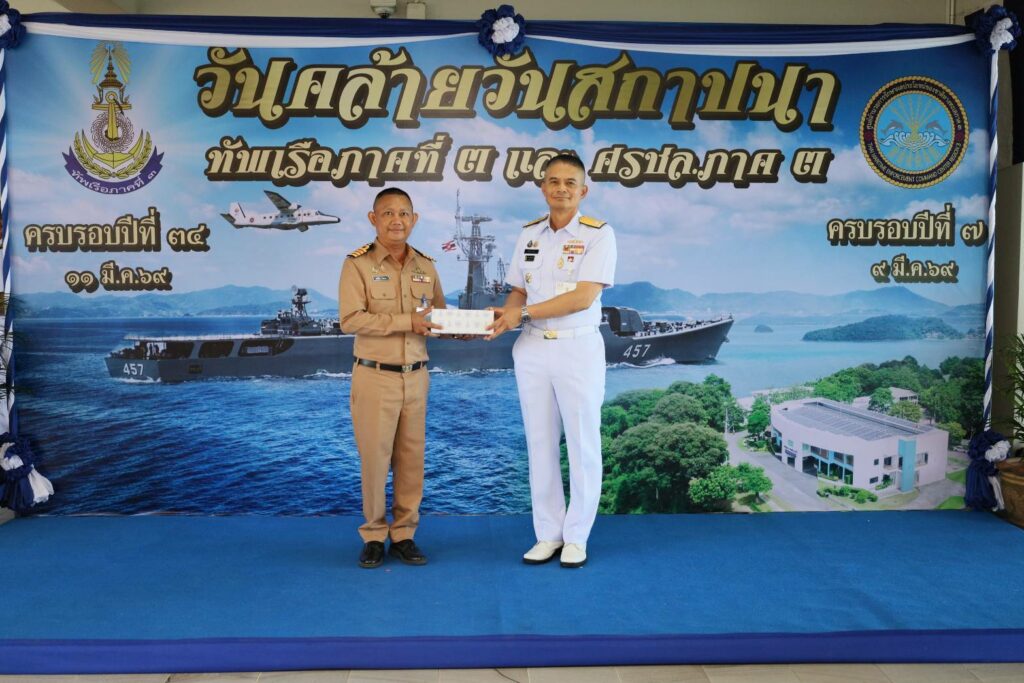 เมื่อ ๑๑ มี.ค.๖๙ พล.ร.ท.สมชาย จันทโรธร จก.พร. มอบหมายให้ น.อ.สุทธิใจ ใยทอง ผอ.รพ.ฐท.พง.ทรภ.๓ เป็นผู้แทนมอบแจกันดอกไม้เพื่อร่วมแสดงความยินดี เนื่องในโอกาสวันคล้ายวันสถาปนา ทรภ.๓ และ ศูนย์อำนวยการรักษาผลประโยชน์ของชาติทางทะเลภาค ๓ ณ บก.ทรภ.๓ จว.ภูเก็ต