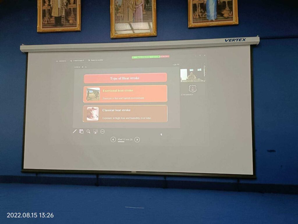 เมื่อ ๑๕ ส.ค.๖๕ นาวาเอก พัฒนชัย เฉลิมวรรณ์ ผู้อำนวยการกองเวชกรรมป้องกัน กรมแพทย์ทหารเรือ และคณะ ร่วมกับโรงพยาบาลโรงเรียนนายเรือ ดำเนินการบรรยายความรู้ (Online & Onsite) และเตรียมความพร้อมแผนเผชิญเหตุในการเกิดโรคลมเหตุร้อน (Heat Stroke) ให้กับนายทหารการฝึก และนักเรียนปกครอง ชั้นปีที่ ๕ โรงเรียนนายเรือ / กกป.พร. / By ข่าวผู้บังคับบัญชา จำนวนคนดู : 17