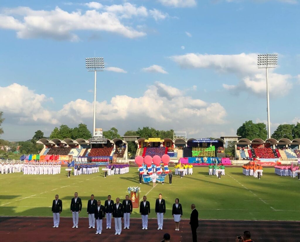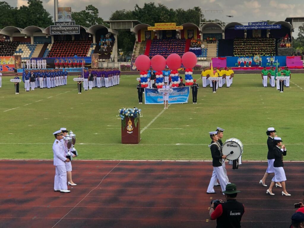 เมื่อ ๒๔ พ.ย.๖๖ วพร.ศวก.พร. เข้าร่วมพิธีเปิด สัปดาห์กีฬานาวี ประจำปี ๒๕๖๖ โดยมี นักเรียนพยาบาลทหารเรือ ชั้นปีที่ ๑ และ ๒ จัดแสดงเชียร์บนอัฒจันทร์ ถือป้ายกองทัพเรือ และเชิญถ้วยรางวัลในพิธีเปิดการแข่งขัน ณ สนามกีฬาราชนาวี กม.๕ สัตหีบ / วพร.ศวก.พร. / By ข่าวผู้บังคับบัญชา จำนวนคนดู : 7