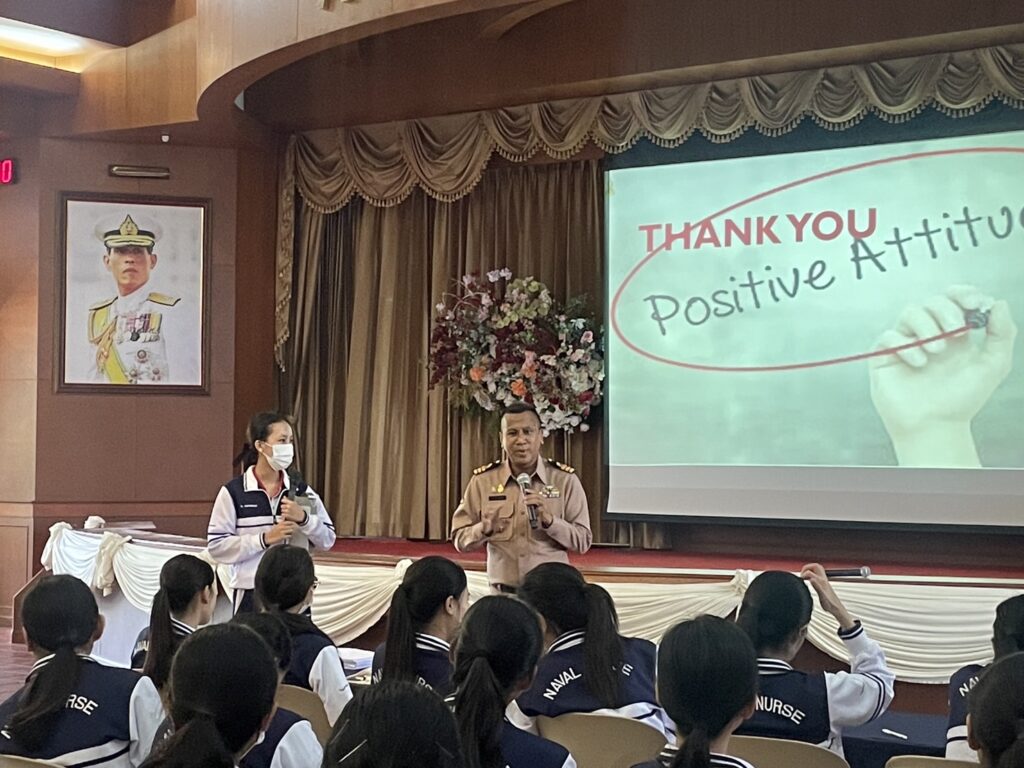 เมื่อ ๒๘ เม.ย.๖๗ นักจิตวิทยาคลินิกกองสุขภาพจิต รพ.อาภากรเกียรติวงศ์ ฐท.สส. สนับสนุนวิทยากรบรรยาย วพร.ศวก.พร. พิเศษหัวข้อ “ฮิลใจ เติมไฟ ปรับ Mind Set เรียนรู้รับมือและใช้ชีวิตอย่างมีสุข” โดยมี นพร. ชั้นปีที่ ๑ – ๔ เข้าร่วมโครงการฯ ณ สโมสรกรมแพทย์ทหารเรือ เขตธนบุรี กรุงเทพมหานคร / วพร.ศวก.พร. / By ข่าวผู้บังคับบัญชา จำนวนคนดู : 14