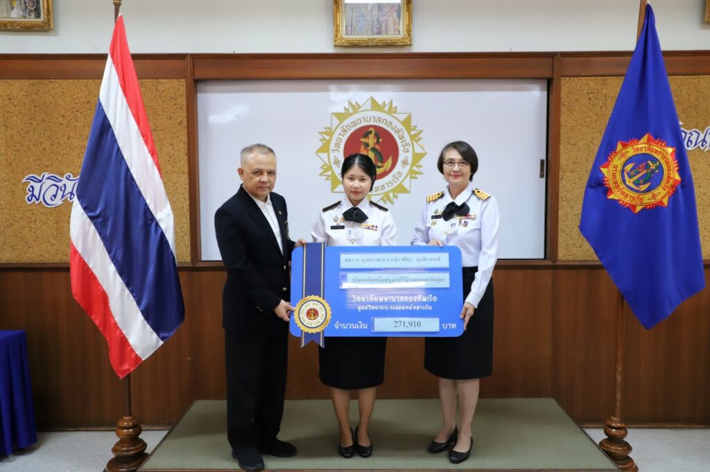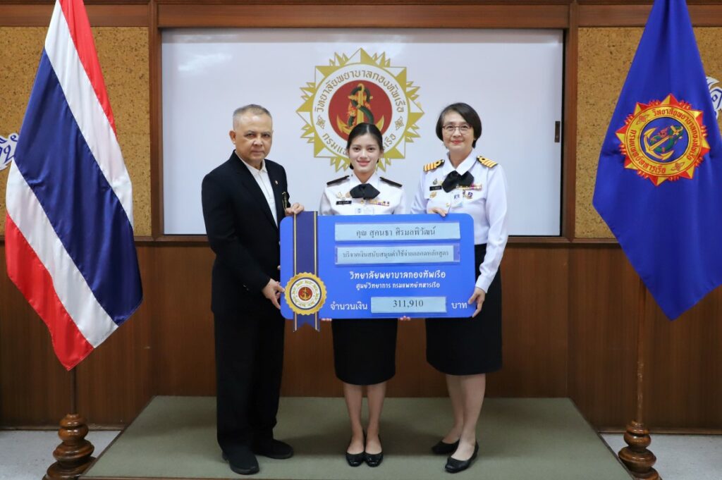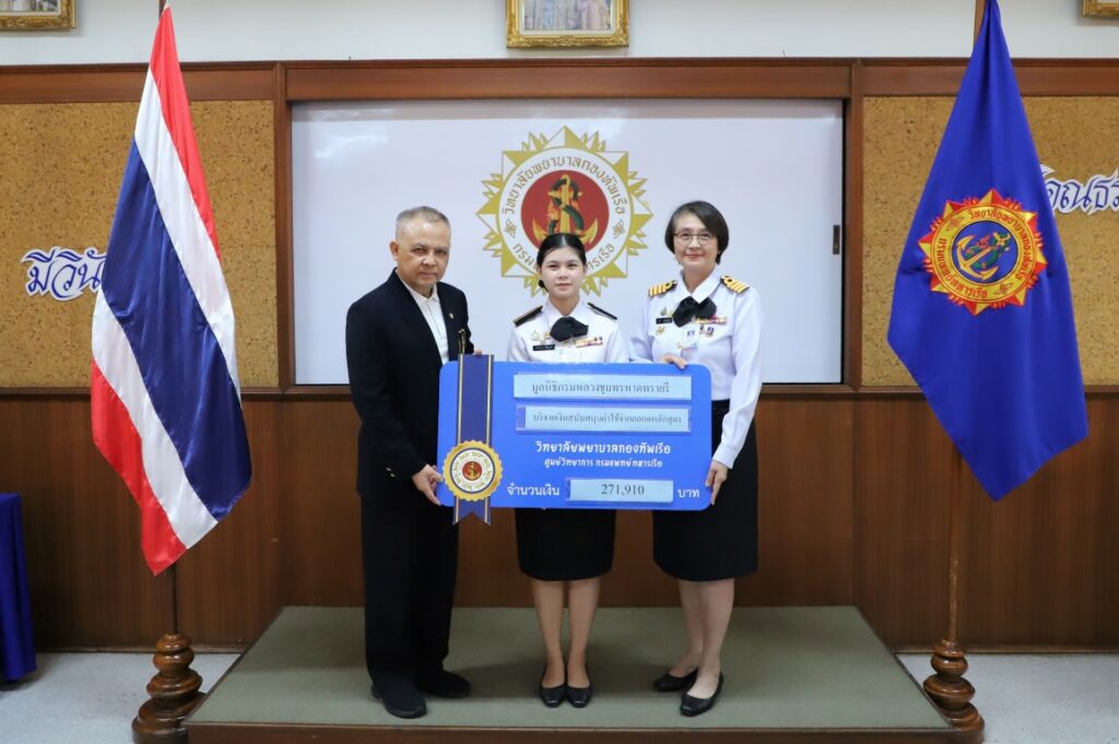 เมื่อ ๒๗ พ.ย.๖๘ พล.ร.อ.จุมพล ลุมพิกานนท์ ประธานมูลนิธิกรมหลวงชุมพรหาดทรายรี และ น.อ.หญิง ศศิธร ลุมพิกานนท์ มอบเงินทุนการศึกษาตลอดหลักสูตรให้แก่นักเรียนพยาบาลทหารเรือ ดังนี้ ๑. ทุนการศึกษามูลนิธิกรมหลวงชุมพรหาดทรายรี จำนวน ๑ ทุน เป็นเงิน ๒๗๑,๙๑๐ บาท ให้แก่ นักเรียนพยาบาลทหารเรือ พัชราพร ศิริสมบัติ ชั้นปีที่ ๑ ซึ่งมีภูมิลำเนาอยู่ในภาคใต้ ๒. ทุนการศึกษา พล.ร.อ.จุมพล และ น.อ.หญิง ศศิธร ลุมพิกานนท์ จำนวน ๑ ทุน เป็นเงิน ๒๗๑,๙๑๐ บาท ให้แก่ นักเรียนพยาบาลทหารเรือ นุชนารถ ศิลาอาสน์ ชั้นปีที่ ๑ ซึ่งมีภูมิลำเนาอยู่ในภาคตะวันออก ๓. ทุนการศึกษา คุณ สุคนธา ศิรมลพิวัฒน์ จำนวน ๑ ทุน เป็นเงิน ๓๑๑,๙๑๐ บาท ให้แก่ นักเรียนพยาบาลทหารเรือ มัธนา หวานเนื้อ ชั้นปีที่ ๑ ซึ่งมีภูมิลำเนาอยู่ในภาคตะวันออกเฉียงเหนือโดยมี น.อ.หญิง คณาลักษณ์ ดลเสมอ ผู้อำนวยการวิทยาลัยพยาบาลกองทัพเรือ น.อ.หญิง พุทธชาด เจริญสิริวิไล และอาจารย์ฝ่ายปกครอง นำนักเรียนพยาบาลทหารเรือเข้ารับทุนการศึกษา ณ ห้องประชุมวิทยาลัยพยาบาลกองทัพเรือ / วพร.ศวก.พร. / By ข่าวผู้บังคับบัญชา จำนวนคนดู : 0