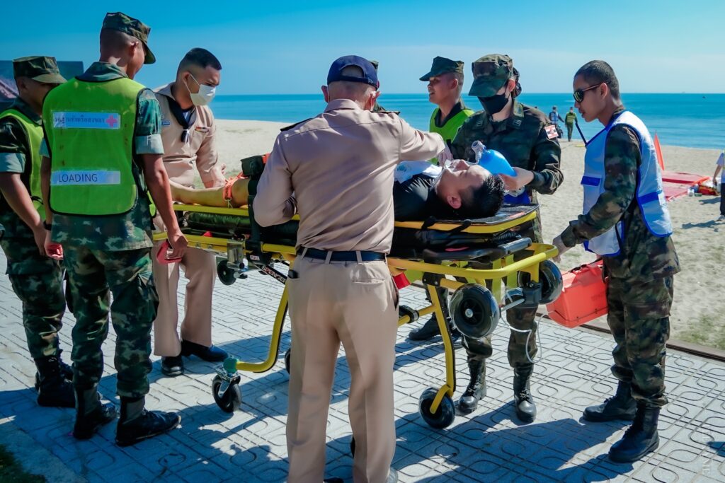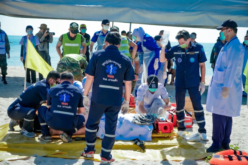 ระหว่างวันที่ ๑๙ – ๒๐ มิ.ย.๖๖ พล.ร.อ.เชิงชาย ชมเชิงแพทย์ ผบ.ทร./ รอง ผอ.ศูนย์อำนวยการรักษาผลประโยชน์ของชาติทางทะเลเเละคณะ ตรวจเยี่ยม การฝึกช่วยเหลือผู้ประสบภัยทางทะเลและการขจัดคราบน้ำมันในทะเล ในพื่นที่ ศรชล ภาค ๒ โดยมีทีมการเเพทย์จากสาธารณสุขจังหวัดสงขลาเเละ โรงพยาบาลฐานทัพเรือสงขลา ทัพเรือภาคที่ ๒ เข้าร่วมการสาธิตการช่วยเหลือผู้ประสบภัยทางทะเล จว.สงขลา / รพ.ฐท.สข.ทรภ.๒ / By ข่าวผู้บังคับบัญชา จำนวนคนดู : 18