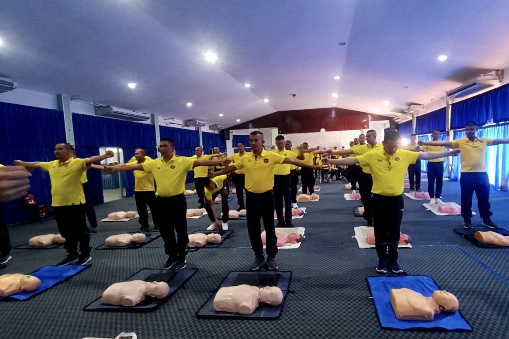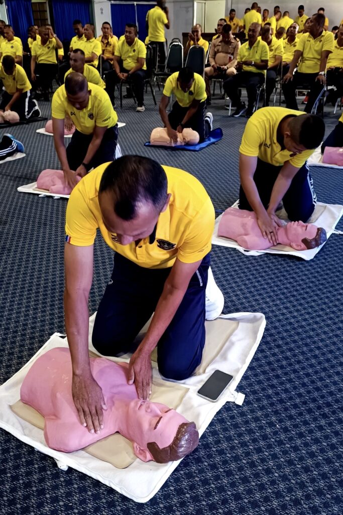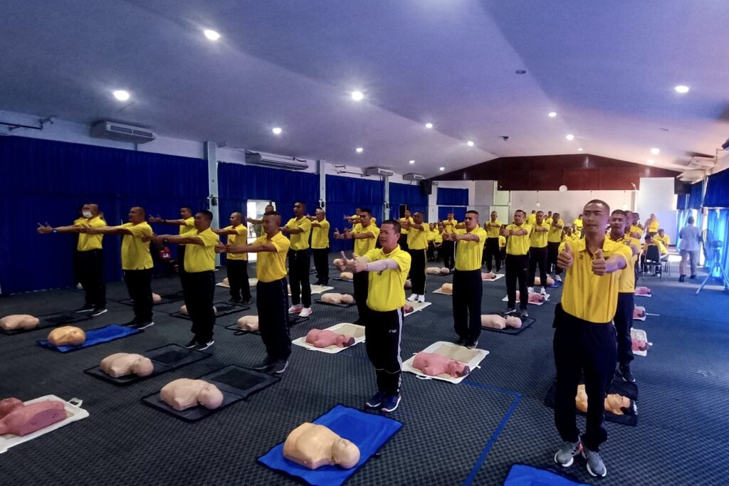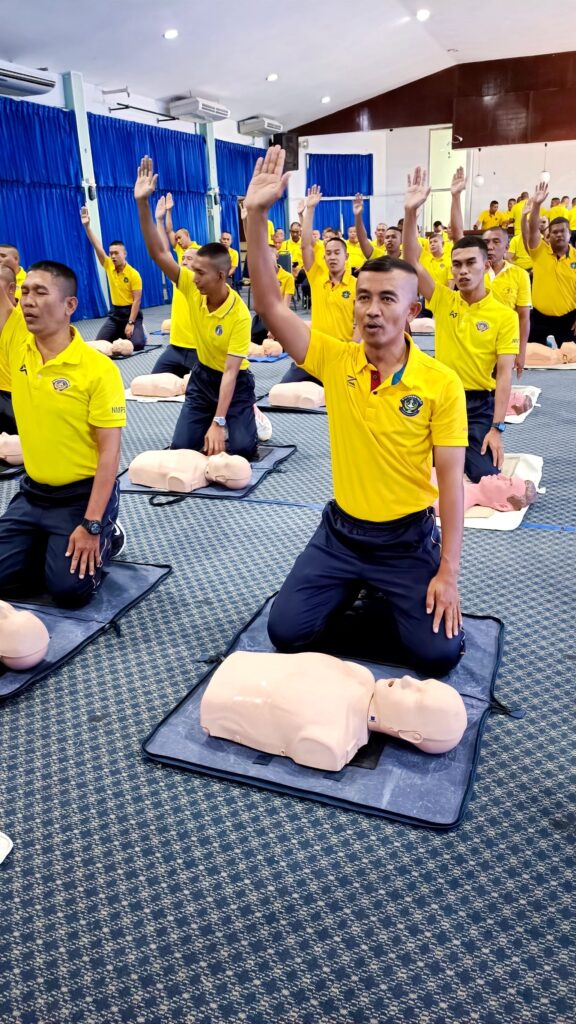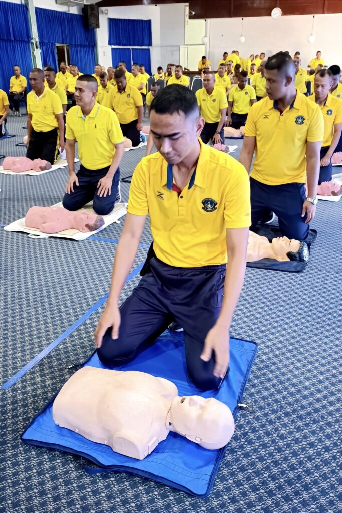 เมื่อ ๒๑ พ.ย.๖๖ ร.ต.นราทร หมู่พิมล รอง ผอ.รพ.ฐท.สข.ทรภ.๒ และทีมวิทยากร รพ.ฐท.สข.ทรภ.๒ บรรยาย ให้ความรู้ ฝึกอบรมการปฐมพยาบาลเบื้องต้น การกู้ชีพขั้นพื้นฐาน(CPR) และการใช้เครื่องฟื้นคืนคลื่นหัวใจด้วยไฟฟ้าแบบอัตโนมัติ(AED) ให้แก่กำลังพล พัน.สห.ทร.ที่ ๓ ณ สโมสรชลาชล ฐท.สข. / รพ.ฐท.สข.ทรภ.๒ / By ข่าวผู้บังคับบัญชา จำนวนคนดู : 2