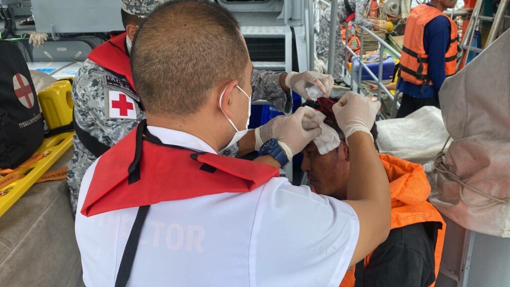 เมื่อ ๒๐ พ.ค.๖๗ เจ้าหน้าที่พยาบาลพร้อมรถพยาบาลของ รพ.ฐท.สข.ทรภ.๒ ขณะทำการฝึกป้องกันพื้นที่บริเวณท่าเทียบเรือ ฐท.สข.ทรภ.๒ ได้รับแจ้งว่าเกิดอุบัติเหตุรถจักรยานยนต์ชนกัน บริเวณท่าแพขนานยนต์ อ.เมืองสงขลา จว.สงขลา จึงเข้าทำการช่วยเหลือปฐมพยาบาลในเบื้องต้น พร้อมติดต่อประสานศูนย์กู้ชีพนเรนทร (๑๖๖๙) มารับผู้บาดเจ็บนำส่งโรงพยาบาลต่อไป / รพ.ฐท.สข.ทรภ.๒ / By ข่าวผู้บังคับบัญชา จำนวนคนดู : 4