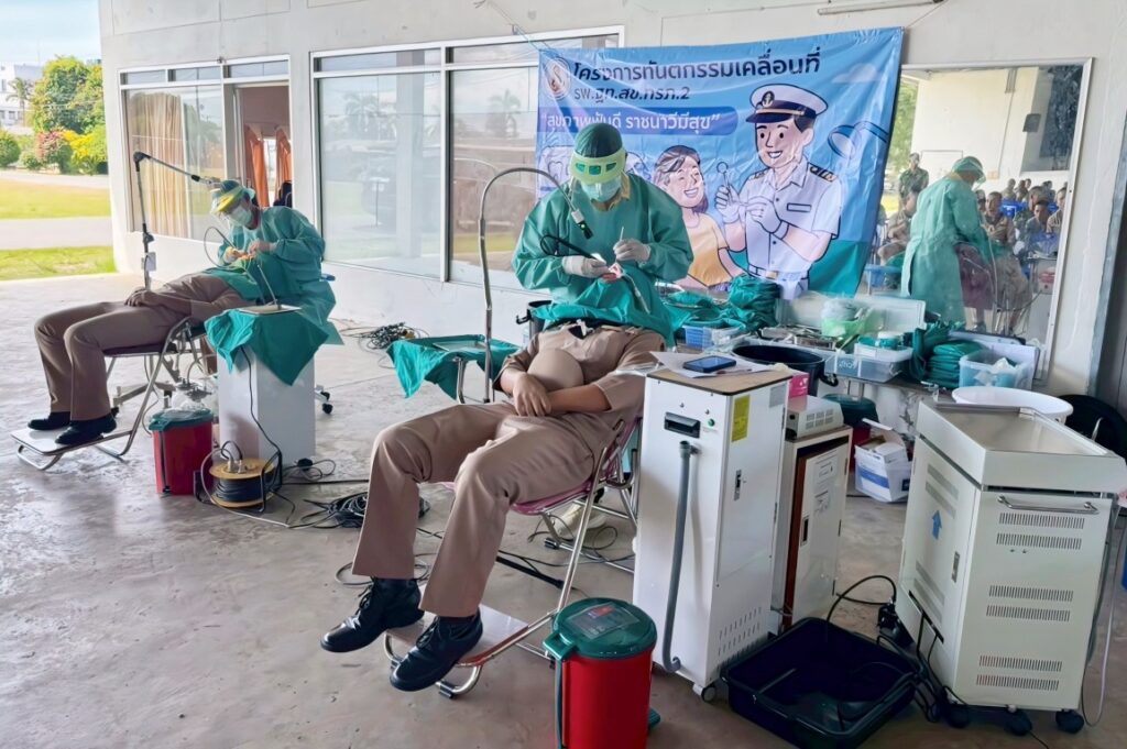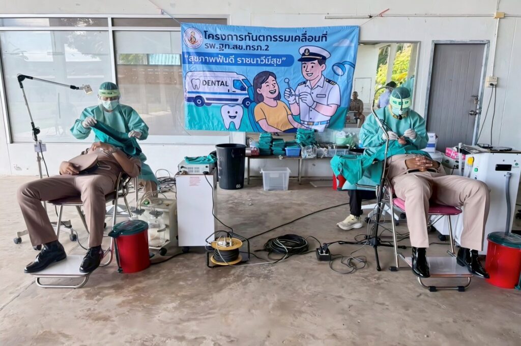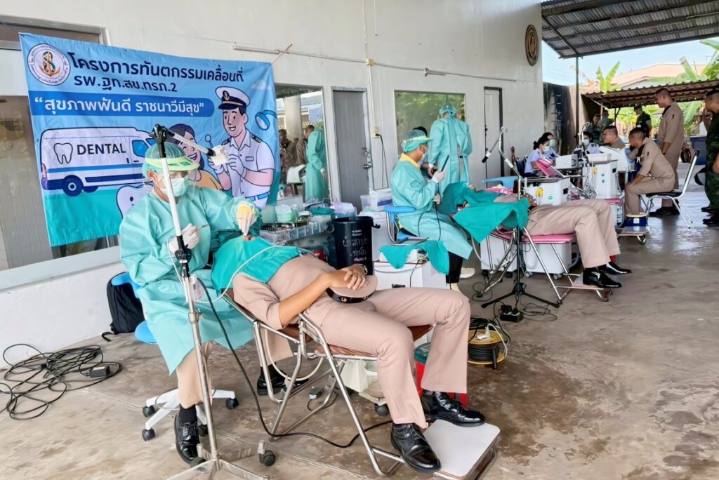 เมื่อ ๑๗ ก.ค.๖๘ แผนกทันตกรรม รพ.ฐท.สข.ทรภ.๒ ออกหน่วยทันตกรรมเคลื่อนที่ ภายใต้โครงการ “สุขภาพฟันดี ราชนาวีมีสุข” จัดกิจกรรมแนะนำแนวทางการดูแลทันตสุขภาพ และให้บริการตรวจรักษาสุขภาพช่องปาก และฟัน ให้แก่ข้าราชการ และทหารกองประจำการ เพื่อให้กำลังพลมีภาวะสุขภาพช่องปาก และฟันที่ดี สามารถปฏิบัติหน้าที่ได้อย่างมีประสิทธิภาพ ณ โรงพละศึกษากอง รปภ.ฐท.สข.ทรภ.๒ / รพ.ฐท.สข.ทรภ.๒ / By ข่าวผู้บังคับบัญชา จำนวนคนดู : 0