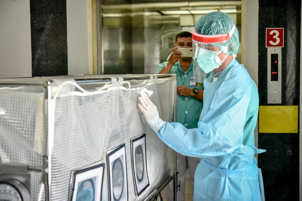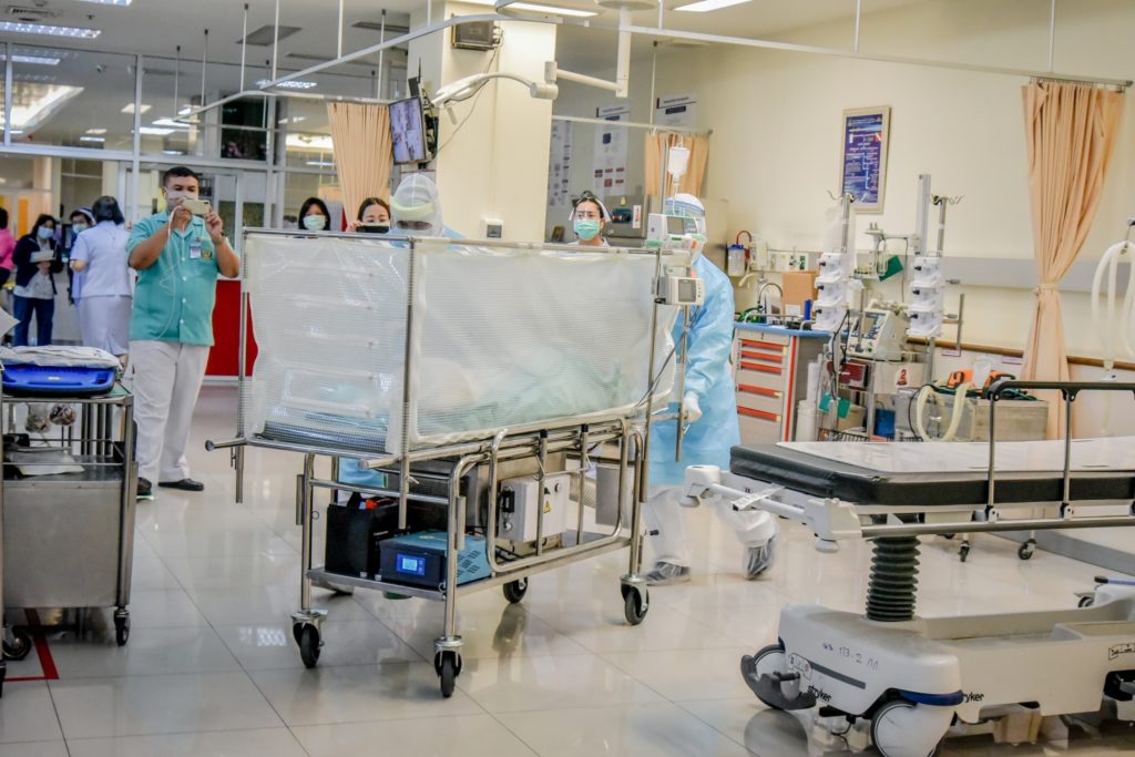 เมื่อวันที่ 15 ม.ค.64 โรงพยาบาลสมเด็จพระปิ่นเกล้า กรมแพทย์ทหารเรือ ดำเนินการซ้อมการเคลื่อนย้ายผู้ป่วยติดเชื้อไวรัสโคโรนา ( Covid-19 ) จากห้องตรวจโรคฉุกเฉินไปยังหอผู้ป่วยวิกฤต เพื่อทบทวนหลักการปฏิบัติที่ถูกต้อง และสรุปปัญหาข้อขัดข้องที่เกิดขึ้นพร้อมหาแนวทางแก้ไข เพื่อให้การปฏิบัติงานจริงเป็นไปด้วยความเรียบร้อย โดยมี น.อ.หญิง ปิติยา ปิยะนุช รอง ผอ.รพ.สมเด็จพระปิ่นเกล้า พร. ฝ่ายบริการสุขภาพ และ น.อ.หญิง จารุนันท์ สุภาพงษ์ รอง ผอ.รพ.ฯ ฝ่ายการพยาบาล เข้าร่วมชมการซ้อมฯ และรับฟังสรุป / รพ.สมเด็จพระปิ่นเกล้าฯ / By admin จำนวนคนดู : 84