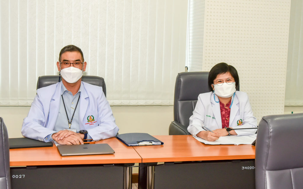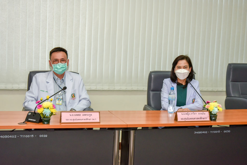 นาวาเอกหญิง ภาวิกา ธรรมโน รองผู้อำนวยการโรงพยาบาลสมเด็จพระปิ่นเกล้า กรมแพทย์ทหารเรือ ฝ่ายศึกษาอบรมและวิจัย/ผอ.ศูนย์แพทยศาสตรศึกษา รพ.ฯ พร้อมคณะอาจารย์จากศูนย์แพทยศาสตรศึกษา เข้าร่วมกิจกรรมสานสัมพันธ์นิสิต – อาจารย์ ผ่านทางระบบ Video Conference กับนิสิตคณะแพทยศาสตร์ มหาวิทยาลัยบูรพา ณ ห้องประชุม พลเรือเอก หม่อมเจ้าปุสาณ สวัสดิวัตน์ ชั้น ๓ อาคารผู้ป่วยนอก รพ.ฯ เมื่อวันที่ ๙ พฤศจิกายน ๒๕๖๔