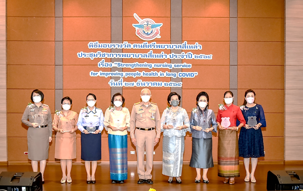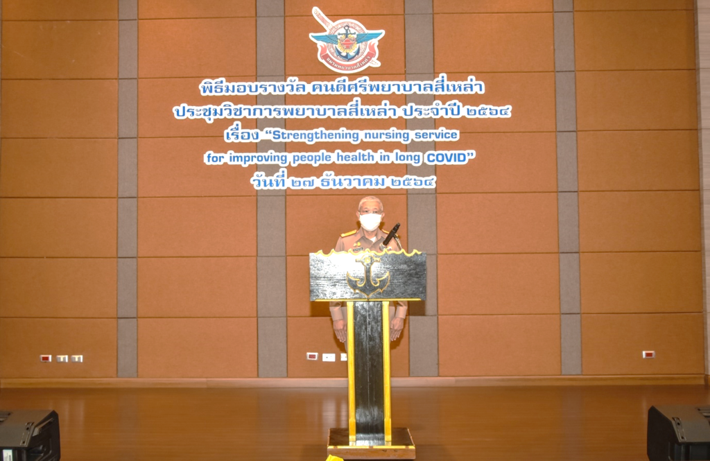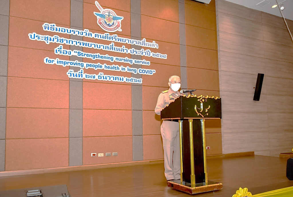 เมื่อ ๒๗ ธ.ค.๖๔ พล.ร.ต.ณัฐ อิศรางกูร ณ อยุธยา ผอ.รพ.สมเด็จพระปิ่นเกล้า พร. เป็นประธานพิธีมอบรางวัล “ คนดีศรีพยาบาลสี่เหล่า ” และเปิดประชุมวิชาการพยาบาลสี่เหล่า ประจำปี ๒๕๖๔ เรื่อง “ Strengthening nursing service for improving people health in long COVID ” โดยมี น.อ.หญิง วรัญญา คุ้มผาติ รองผอ.รพ.สมเด็จพระปิ่นเกล้า พร. ฝ่ายการพยาบาล/ประธานชมรมพยาบาลสี่เหล่า ประจำปี ๒๕๖๔ เป็นผู้กล่าวรายงาน ณ ห้องประชุมพลเรือตรี เล็ก สุมิตร ชั้น 5 อาคารพิเคราะห์และบำบัดโรค รพ.ฯ / รพ.สมเด็จพระปิ่นเกล้าฯ / By ข่าวผู้บังคับบัญชา จำนวนคนดู : 10