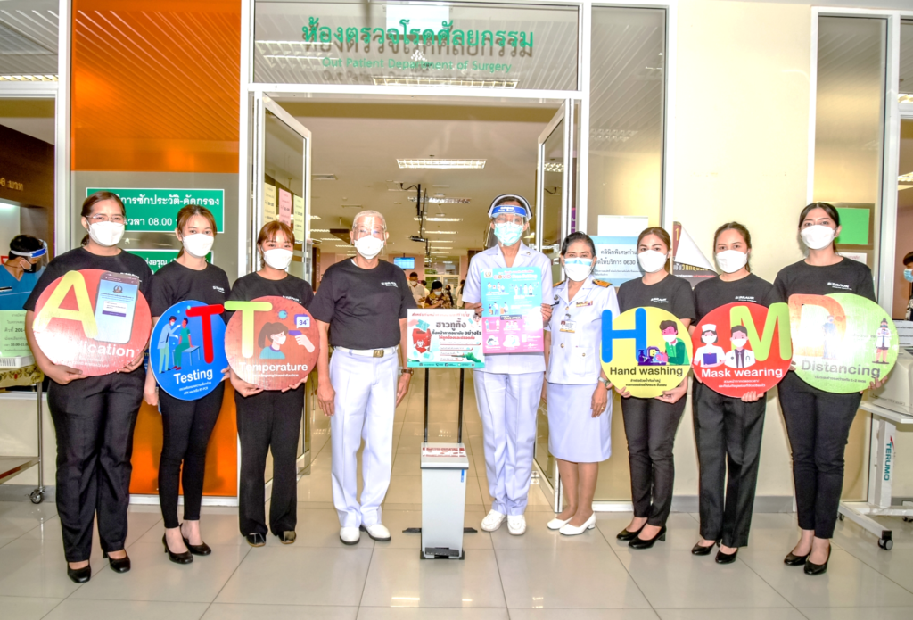 เมื่อ ๑๗ ม.ค.๖๕ พล.ร.ต.ณัฐ อิศรางกูร ณ อยุธยา ผอ.รพ.สมเด็จพระปิ่นเกล้า กรมแพทย์ทหารเรือ เป็นประธานเปิดโครงการ 2P Safety Hospital : กิจกรรม Hand hygiene promotion and Covid Free Setting “ มาตรการปิ่นเกล้าปลอดภัย ห่างไกลโควิด ” ภายใต้มาตรการ DMHTTA เพื่อให้ผู้รับบริการ บุคลากร และสิ่งแวดล้อมปลอดภัยจากโควิด จัดโดย คณะกรรมการป้องกันและควบคุมการติดเชื้อ รพ.ฯ ร่วมกับ กลุ่มงานอาชีวเวชกรรม รพ.ฯ ณ ลานเอนกประสงค์ ชั้น ๑ อาคารพิเคราะห์และบำบัดโรค รพ.ฯ / รพ.สมเด็จพระปิ่นเกล้าฯ / By ข่าวผู้บังคับบัญชา จำนวนคนดู : 20