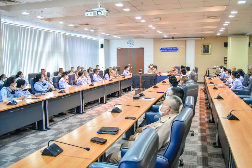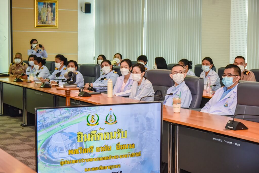 เมื่อ ๒๗ พ.ค.๖๕ พล.ร.ต.ณัฐ อิศรางกูร ณ อยุธยา ผอ.รพ.สมเด็จพระปิ่นเกล้า กรมแพทย์ทหารเรือ ให้การต้อนรับ พล.ร.ต. อานัน นิ่มนวล ผอ.รพ.สมเด็จพระนางเจ้าสิริกิติ์ กรมแพทย์ทหารเรือ และคณะ ในการเยี่ยมชมและศึกษาดูงานศูนย์แพทยศาสตรศึกษา รพ.ฯ เรื่อง “ การเตรียมความพร้อมในการจัดการศึกษาแก่นักศึกษาแพทย์ชั้นคลินิก มหาวิทยาลัยบูรพา ” และกลุ่มงานพัสดุ รพ.ฯ เรื่อง “ การจัดทำทะบียนคุมทรัพย์สินในระบบ EMR Soft ” ณ ห้องประชุม พลเรือเอก หม่อมเจ้าปุสาณ สวัสดิวัตน์ ชั้น ๓ อาคารผู้ป่วยนอก รพ.ฯ / รพ.สมเด็จพระปิ่นเกล้าฯ / By ข่าวผู้บังคับบัญชา จำนวนคนดู : 27