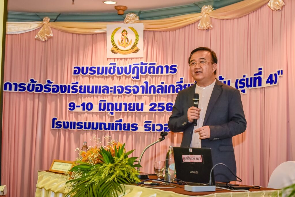 ระหว่างวันที่ ๙ – ๑๐ มิ.ย.๖๕ น.อ.ปิยะวัฒน์ วงษ์วานิช รอง ผอ.รพ.สมเด็จพระปิ่นเกล้า กรมแพทย์ทหารเรือ ฝ่ายบริหาร เป็นประธานเปิดโครงการอบรมเชิงปฏิบัติการ เรื่อง “ การจัดการข้อร้องเรียนและเจรจาไกล่เกลี่ยเบื้องต้น ( รุ่นที่ ๔ ) ” จัดโดย ศูนย์สันติวิธีและบริหารความเสี่ยง โรงพยาบาลสมเด็จพระปิ่นเกล้า ณ ห้องวิมานทอง โรงแรมมณเฑียร ริเวอร์ไซด์ กรุงเทพฯ