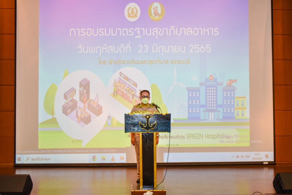 เมื่อ ๒๓ มิ.ย.๖๕ น.อ.สาวิตต์ อัมพรอารีกุล รอง ผอ.รพ.สมเด็จพระปิ่นเกล้า กรมแพทย์ทหารเรือ ฝ่ายสนับสนุน เป็นประธานเปิดการอบรมมาตรฐานสุขาภิบาลอาหาร ให้แก่ผู้ประกอบการร้านขายอาหารและเครื่องดื่มภายในโรงพยาบาล โดยมี วิทยากรจากฝ่ายสิ่งแวดล้อมและสุขาภิบาล เขตธนบุรี เป็นผู้บรรยายและให้ความรู้ จัดโดย คณะทำงาน GREEN Hospital โรงพยาบาลสมเด็จพระปิ่นเกล้า ณ ห้องประชุม พล.ร.ต.เล็ก สุมิตร ชั้น ๕ อาคารพิเคราะห์และบำบัดโรค รพ.ฯ