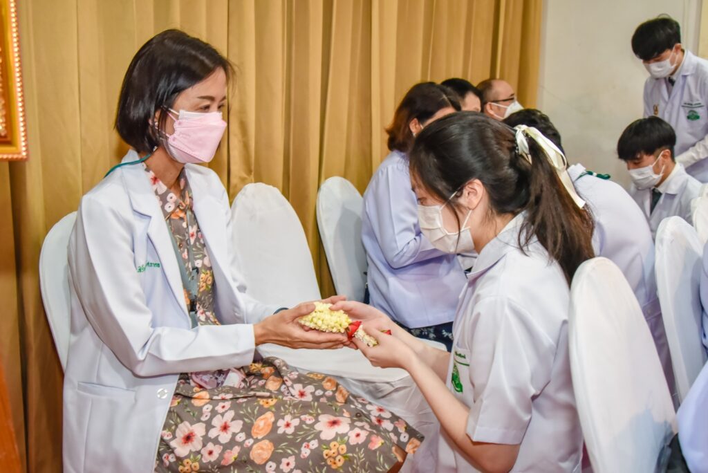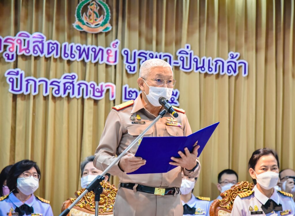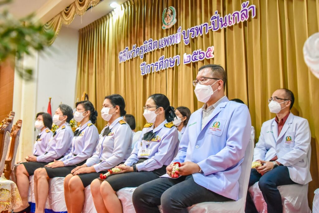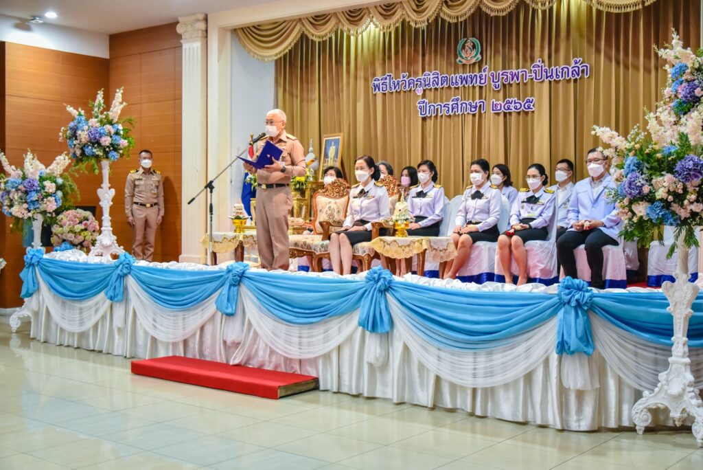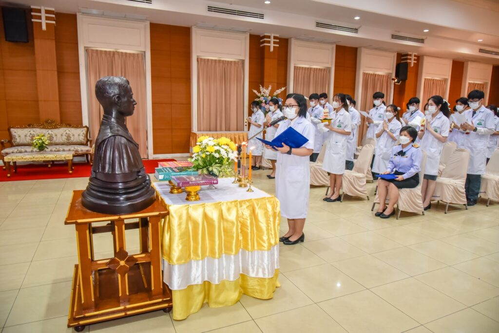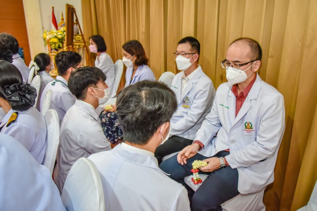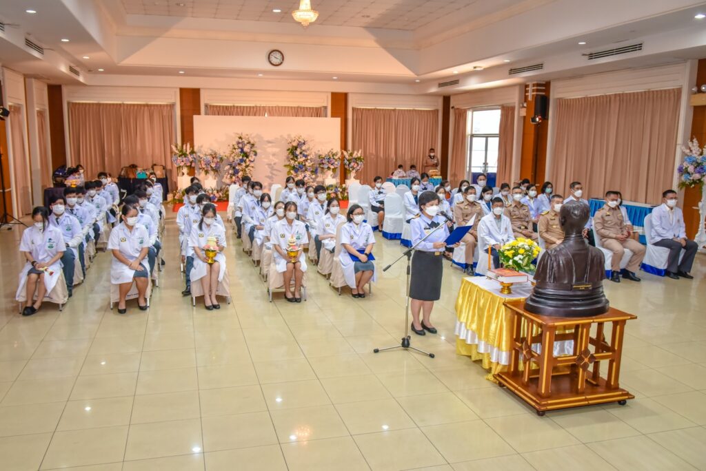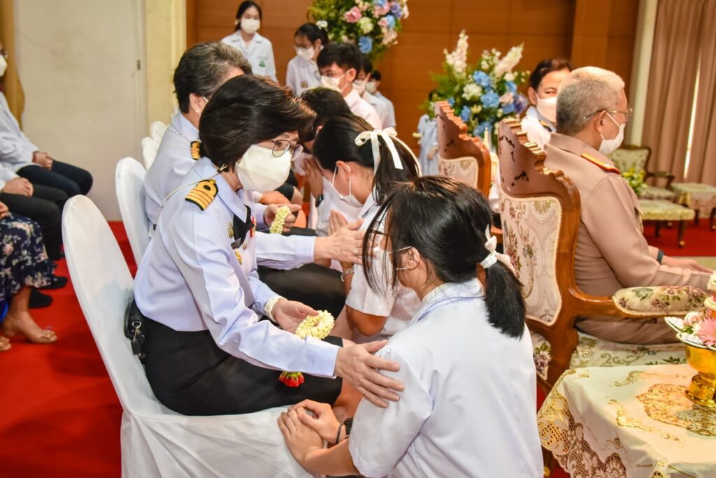 เมื่อ ๑๕ ก.ย.๖๕ พลเรือตรี ณัฐ อิศรางกูร ณ อยุธยา ผู้อำนวยการโรงพยาบาลสมเด็จพระปิ่นเกล้า กรมแพทย์ทหารเรือ เป็นประธานพิธีไหว้ครูนิสิตแพทย์ มหาวิทยาลัยบูรพา – ปิ่นเกล้า ประจำปีการศึกษา ๒๕๖๕ พร้อมทั้งกล่าวให้โอวาท ตัวแทนนิสิตแพทย์นำกล่าวปฏิญาณและบทไหว้ครู เชิญพานธูปเทียน พานดอกไม้ และพวงมาลัยทำความเคารพคณาจารย์แพทย์ โดยมี นาวาเอกหญิง ภาวิกา ธรรมโน รอง ผอ.รพ.ฯ ฝ่ายศึกษาอบรมและวิจัย / ผู้อำนวยการศูนย์แพทยศาสตร์ศึกษา รพ.ฯ พร้อมคณาจารย์แพทย์ และนิสิตแพทย์ เข้าร่วมพิธีฯ ณ ห้องประชุมประพัฒน์ศรี สโมสร รพ.สมเด็จพระปิ่นเกล้าฯ / รพ.สมเด็จพระปิ่นเกล้าฯ / By ข่าวผู้บังคับบัญชา จำนวนคนดู : 35