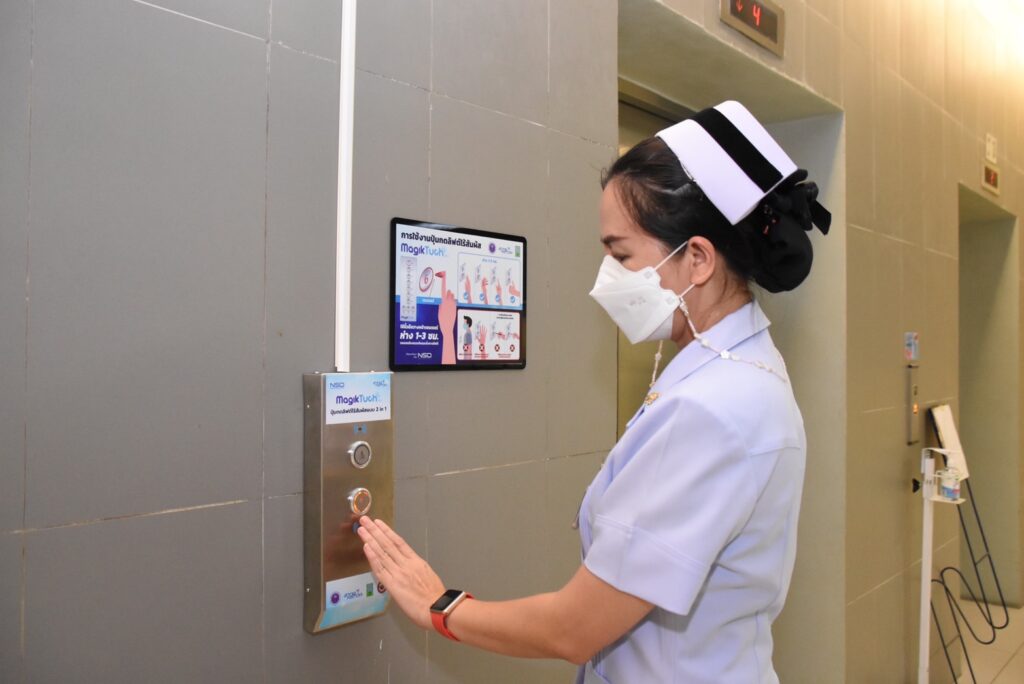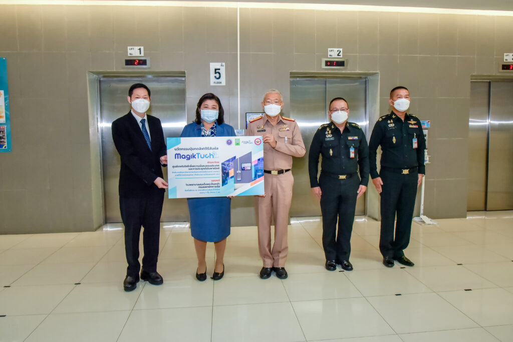 เมื่อ ๒๘ ก.ย.๖๕ พลเรือตรี ณัฐ อิศรางกูร ณ อยุธยา ผู้อำนวยการโรงพยาบาลสมเด็จพระปิ่นเกล้า กรมแพทย์ทหารเรือ รับมอบนวัตกรรม “ Magik Tuch ” สำหรับแปลงระบบลิฟท์ทั่วไป ให้เป็นระบบลิฟท์ไร้สัมผัส “ Magik Tuch ” จำนวน ๒ ชุด ติดตั้งใช้งาน ณ อาคารพิเคราะห์และบำบัดโรค รพ.ฯ เพื่อลดความเสี่ยง เลี่ยงการสัมผัสเชื้อก่อโรคที่อาจสะสมอยู่บนปุ่มกดลิฟต์ที่ประชาชนมาใช้บริการ โดยมี ดร.วิภารัตน์ ดีอ่อง ผู้อำนวยการสำนักงานการวิจัยแห่งชาติ (วช.) พลโท สมเกียรติ สัมพันธ์ เจ้ากรมวิทยาศาสตร์แลเทคโนโลยีกลาโหม (วท.กห.) และ ดร.ศิวรักษ์ ศิวโมกษธรรม ผู้อำนวยการศูนย์เทคโนโลยีเพื่อความมั่นคงของประเทศฯ เป็นประธานมอบฯ ณ ห้องประชุม พลเรือโท สนิท โปษะกฤษณะ อาคารพิเคราะห์และบำบัดโรค ชั้น ๕ รพ.สมเด็จพระปิ่นเกล้าฯ / รพ.สมเด็จพระปิ่นเกล้าฯ / By ข่าวผู้บังคับบัญชา จำนวนคนดู : 10