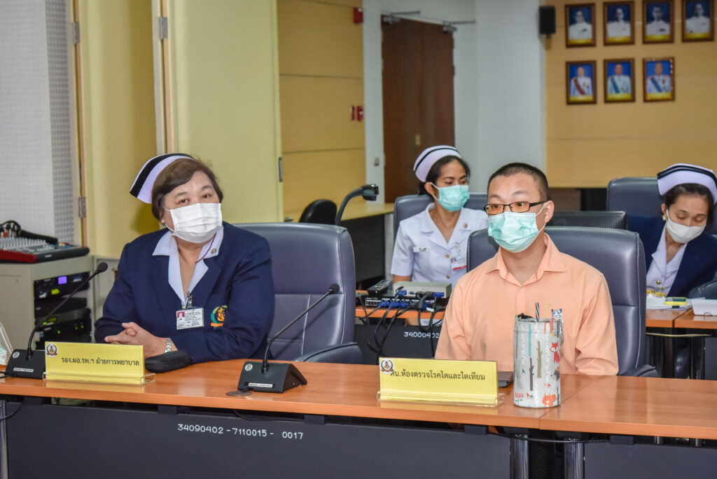 เมื่อ ๒ ก.พ.๖๖ พล.ร.ต.ณัฐ อิศรางกูร ณ อยุธยา ผอ.รพ.สมเด็จพระปิ่นเกล้า พร. เป็นประธานให้การต้อนรับคณะอนุกรรมการตรวจรับรองมาตรฐานการรักษาโดยการฟอกเลือดด้วยเครื่องไตเทียม จากราชวิทยาลัยอายุรแพทย์แห่งประเทศไทย นำโดย แพทย์หญิง สุขฤทัย เลขยานนท์ และแพทย์หญิง พรเพ็ญ แสงถวัลย์ ในการเยี่ยมสำรวจหน่วยไตเทียม รพ.สมเด็จพระปิ่นเกล้า พร. ณ ห้องประชุม พลเรือเอก หม่อมเจ้าปุสาณ สวัสดิวัตน์ ชั้น ๓ อาคารผู้ป่วยนอก รพ.สมเด็จพระปิ่นเกล้า พร. / รพ.สมเด็จพระปิ่นเกล้าฯ / By ข่าวผู้บังคับบัญชา จำนวนคนดู : 13