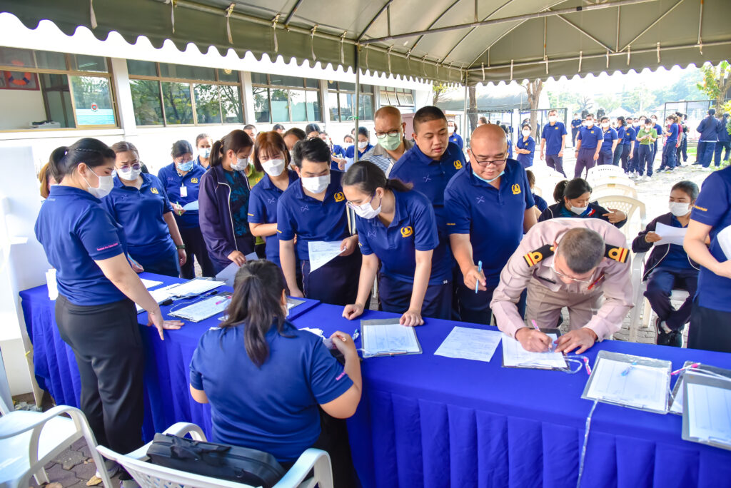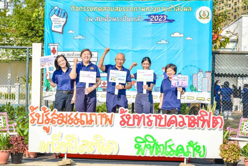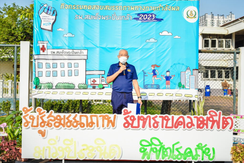 ระหว่าง ๒๐ -๒๔ ก.พ.๖๖ พล.ร.ต.ณัฐ อิศรางกูร ณ อยุธยา ผอ.รพ.สมเด็จพระปิ่นเกล้า พร. เป็นประธานเปิดกิจกรรมทดสอบสมรรถภาพทางกาย ครั้งที่ ๑ “รับรู้สมรรถภาพ รับทราบความฟิต มาวิ่งปีละนิด พิชิตโรคภัย” พร้อมเข้าร่วมทดสอบสมรรถภาพทางกาย โดยมี พล.ร.ต.หญิง ภาวิกา ธรรมโน ที่ปรึกษา ผอ.รพ.ฯ ด้านแพทยศาสตรศึกษา น.อ.หญิง มัญชุสา น้อยอำแพง รอง ผอ.รพ.ฯ ฝ่ายการพยาบาล และข้าราชการ พนักงาน ลูกจ้าง สังกัด รพ.ฯ เข้าร่วมกิจกรรมฯ ณ ห้องประชุม รร.นาวิกเวชกิจ ศวก.พร. และสนามฟุตบอล พร. / รพ.สมเด็จพระปิ่นเกล้าฯ / By ข่าวผู้บังคับบัญชา จำนวนคนดู : 11