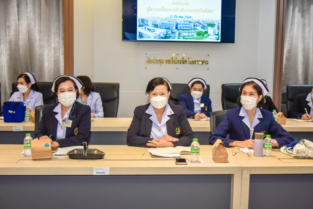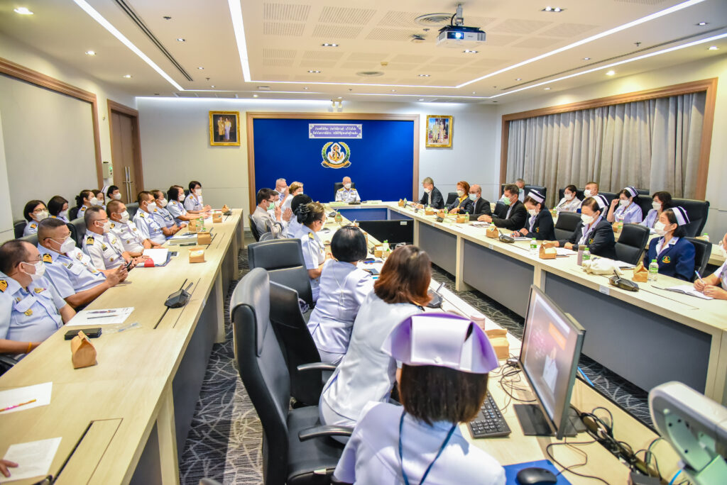 เมื่อ ๒๗ มี.ค.๖๖ พล.ร.ต.ณัฐ อิศรางกูร ผอ.รพ.สมเด็จพระปิ่นเกล้า พร. ให้การต้อนรับ พล.ร.ต.สุรพล ชัชวาลวานิช ที่ปรึกษาทางการแพทย์ สนง.ประกันสังคม คุณกาญจนา ชวนไชยสิทธิ์ ที่ปรึกษาทางการพยาบาล สนง.ประกันสังคม และบุคลากรของสนง.ประกันสังคมกรุงเทพมหานครพื้นที่ ๕ ในการตรวจประเมินการให้บริการทางการแพทย์ของสถานพยาบาลในโครงการประกันสังคม ณ อาคารพิเคราะห์และบำบัดโรค ชั้น ๕ ห้องประชุม พลเรือโท สนิท โปษะกฤษณะ รพ.สมเด็จพระปิ่นเกล้า พร. / รพ.สมเด็จพระปิ่นเกล้าฯ / By ข่าวผู้บังคับบัญชา จำนวนคนดู : 4