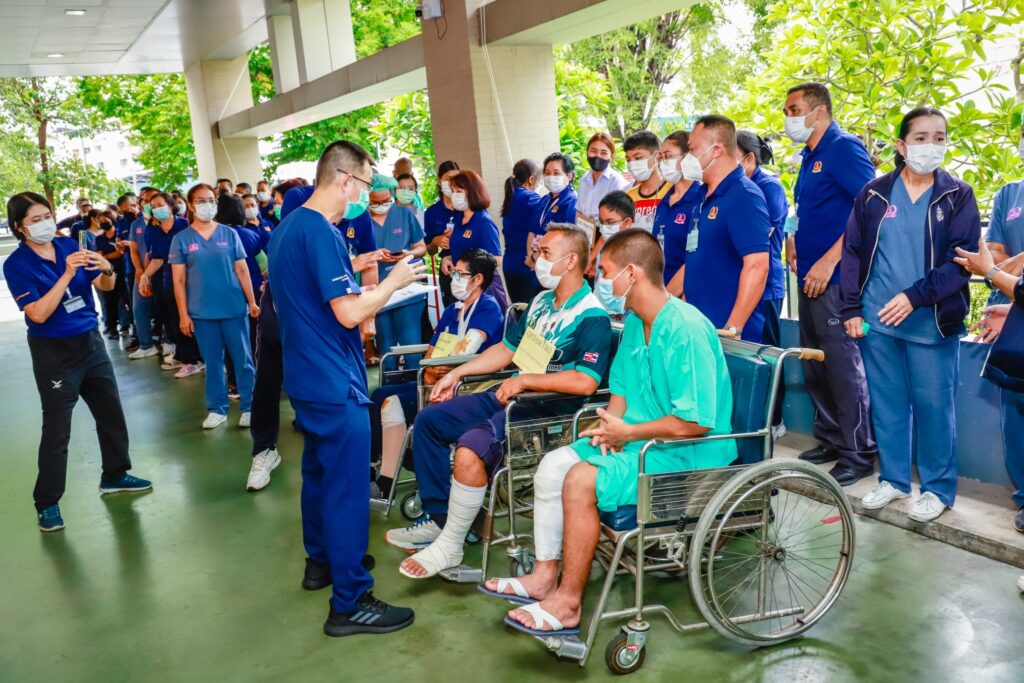 เมื่อ ๒๖ เม.ย.๖๖ รพ.สมเด็จพระปิ่นเกล้า พร. ดำเนินการซ้อมแผนอัคคีภัยระดับ รพ.ฯ ประจำปี งป.๖๖ ร่วมกับหน่วยดับเพลิง กขส.ฐท.กท. สถานีดับเพลิงกู้ภัยตลาดพลู และสถานีตำรวจบุคคโล เพื่อเตรียมความพร้อมด้านความปลอดภัยให้กับผู้รับบริการในกรณีเกิดเหตุฉุกเฉิน โดยมี พล.ร.ต.ณัฐ อิศรางกูร ณ อยุธยา ผอ.รพ.สมเด็จพระปิ่นเกล้า พร. เป็นประธานประชุมสรุปผลการดำเนินงานฝึกซ้อมฯ ณ ห้องประชุม พลเรือโท สนิท โปษะกฤษณะ อาคารพิเคราะห์และบำบัดโรค ชั้น ๕ รพ.สมเด็จพระปิ่นเกล้า พร. / รพ.สมเด็จพระปิ่นเกล้าฯ / By ข่าวผู้บังคับบัญชา จำนวนคนดู : 17