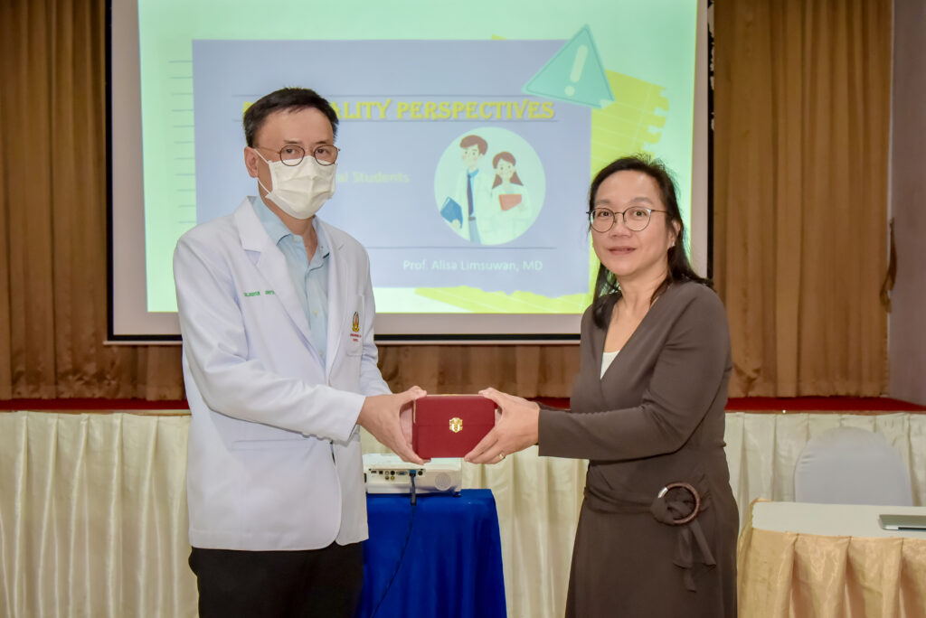 เมื่อ ๓ พ.ค.๖๖ ศูนย์แพทยศาสตรศึกษา รพ.สมเด็จพระปิ่นเกล้า พร. จัดกิจกรรมบรรยาย เรื่อง “Personality Perspective พัฒนาบุคลิกภาพและเสริมภาพลักษณ์สู่การเป็นแพทย์มืออาชีพ” ให้กับนิสิตแพทย์ชั้นปีที่ ๔ และชั้นปีที่ ๕ โดยมี ศาสตราจารย์แพทย์หญิง อลิสา ลิ้มสุวรรณ รองคณบดีฝ่ายโรงเรียนการบริหารงานโรงพยาบาล คณะแพทยศาสตร์โรงพยาบาลรามาธิบดี มหาวิทยาลัยมหิดล ให้เกียรติเป็นวิทยากรบรรยาย ณ ห้องประชุมประพัฒน์ศรี สโมสร รพ.สมเด็จพระปิ่นเกล้า พร. / รพ.สมเด็จพระปิ่นเกล้าฯ / By ข่าวผู้บังคับบัญชา จำนวนคนดู : 5