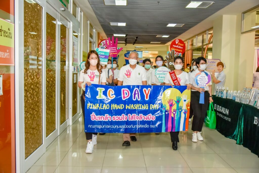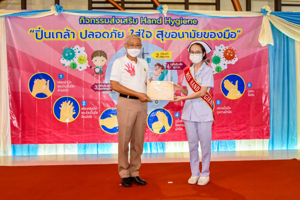 เมื่อ ๓๐ พ.ค.๖๖ พล.ร.ต.ณัฐ อิศรางกูร ณ อยุธยา ผอ.รพ.สมเด็จพระปิ่นเกล้า พร. เป็นประธานเปิดกิจกรรมส่งเสริม Hand Hygiene “ปิ่นเกล้า ปลอดภัย ใส่ใจ สุขอนามัยของมือ” พร้อมทั้งมอบเกียรติบัตรให้กับบุคลากรของ รพ.ฯ ที่เป็นบุคคลต้นแบบด้านการทำความสะอาดมือ และร่วมเดินรณรงค์เชิญชวนให้ผู้มารับบริการตามห้องตรวจโรคต่างๆภายใน รพ.ฯ ให้ใส่ใจสุขอนามัยของมือด้วยการล้างมืออย่างถูกวิธี จัดโดย คณะทำงานส่งเสริมสุขอนามัยของมือในการป้องกันการแพร่กระจายเชื้อ รพ.ฯ ณ อาคารพิเคราะห์และบำบัดโรค ชั้น ๑ ลานกิจกรรม รพ.สมเด็จพระปิ่นเกล้า พร. / รพ.สมเด็จพระปิ่นเกล้าฯ / By ข่าวผู้บังคับบัญชา จำนวนคนดู : 12