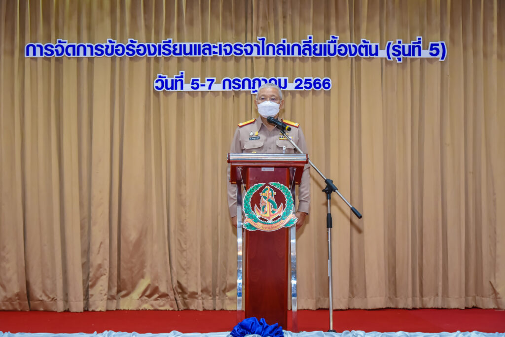 ระหว่างวันที่ ๕ – ๗ ก.ค.๖๖ พล.ร.ต.ณัฐ อิศรางกูร ณ อยุธยา ผอ.รพ.สมเด็จพระปิ่นเกล้า พร. เป็นประธานเปิดโครงการอบรมเชิงปฏิบัติการ เรื่อง “การจัดการข้อร้องเรียนและเจรจาไกล่เกลี่ยเบื้องต้น (รุ่นที่ ๕)” จัดโดย ศูนย์สันติวิธีและบริหารความเสี่ยง รพ.ฯ ณ ห้องประชุมประพัฒน์ศรี สโมสร รพ.สมเด็จพระปิ่นเกล้า พร. / รพ.สมเด็จพระปิ่นเกล้าฯ / By ข่าวผู้บังคับบัญชา จำนวนคนดู : 6