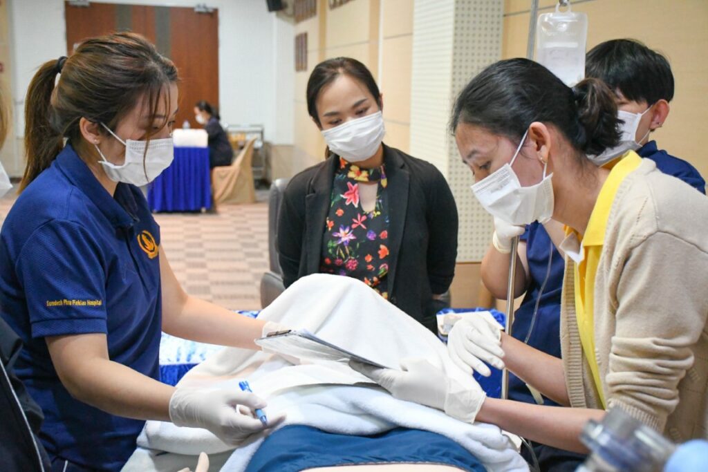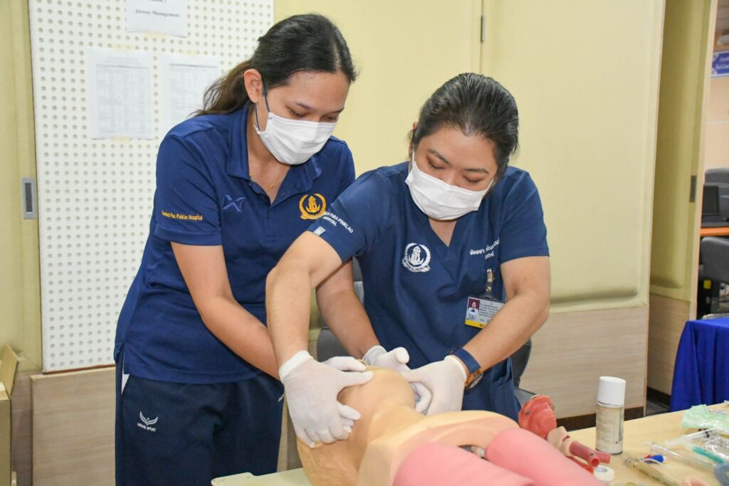 ระหว่างวันที่ ๑๕ – ๑๖ ส.ค.๖๖ ฝ่ายการพยาบาล รพ.สมเด็จพระปิ่นเกล้า พร. ร่วมกับ ทีมการสอนช่วยชีวิตขั้นสูง รพ.ฯ จัดโครงการอบรมเชิงปฏิบัติการ “การช่วยชีวิตขั้นสูงสำหรับบุคลากรทางการแพทย์ : Advanced Cardiovascular Life Support for Healthcare Provider (ACLS-P)” โดยมี น.อ.หญิง จริยา สันตติอนันต์ และทีมงาน ให้เกียรติเป็นวิทยากรบรรยายและฝึกปฏิบัติ ณ ห้องประชุมพลเรือเอก หม่อมเจ้าปุสาณ สวัสดิวัตน์ อาคารผู้ป่วยนอก ชั้น ๓ รพ.สมเด็จพระปิ่นเกล้า พร. / รพ.สมเด็จพระปิ่นเกล้าฯ / By ข่าวผู้บังคับบัญชา จำนวนคนดู : 6