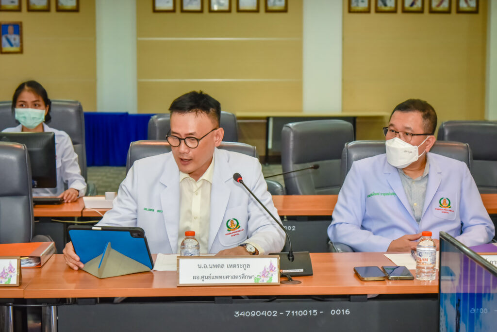 เมื่อ ๒๑ ส.ค.๖๖ พล.ร.ต.ณัฐ อิศรางกูร ณ อยุธยา ผอ.รพ.สมเด็จพระปิ่นเกล้า พร. ให้การต้อนรับ ศาสตราจารย์เกียรติคุณ แพทย์หญิงสมศรี เผ่าสวัสดิ์ และคณะ พิจารณาแนวทางการอนุมัติรับรองโรงพยาบาลในเขตกรุงเทพมหานคร เป็นสถาบันที่ปฏิบัติงานเพิ่มพูนทักษะจากแพทยสภา ในการตรวจเยี่ยมและประเมินการดำเนินการโครงการแพทย์เพิ่มพูนทักษะนำร่องในเขตกรุงเทพมหานคร ประจำปี ๒๕๖๖ ของ รพ.สมเด็จพระปิ่นเกล้า พร. ณ ห้องประชุมพลเรือเอก หม่อมเจ้าปุสาณ สวัสดิวัตน์ อาคารผู้ป่วยนอก ชั้น ๓ รพ.สมเด็จพระปิ่นเกล้า พร. / รพ.สมเด็จพระปิ่นเกล้าฯ / By ข่าวผู้บังคับบัญชา จำนวนคนดู : 12