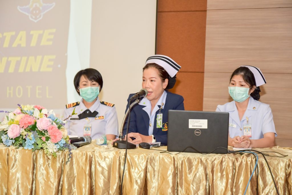 น.อ.หญิง กรองทิพย์ จันทร์อินทร์ รอง ผอ.รพ.สมเด็จพระปิ่นเกล้า พร. ฝ่ายการพยาบาล เป็นประธานเปิดการนำเสนอ “ประสบการณ์ในการปฏิบัติงานใน State Quarantine ที่ผ่านมา” เพื่อเป็นการเพิ่มสมรรถนะพยาบาลในการปฎิบัติงานได้อย่างมีประสิทธิภาพ ณ ห้องประชุม พลเรือตรี เล็ก สุมิตร ชั้น ๕ อาคารพิเคราะห์และบำบัดโรค โรงพยาบาลสมเด็จพระปิ่นเกล้า กรมแพทย์ทหารเรือ เมื่อวันที่ ๔ สิงหาคม ๒๕๖๓
