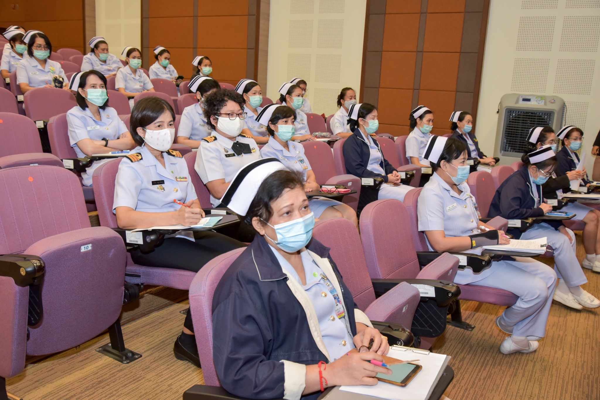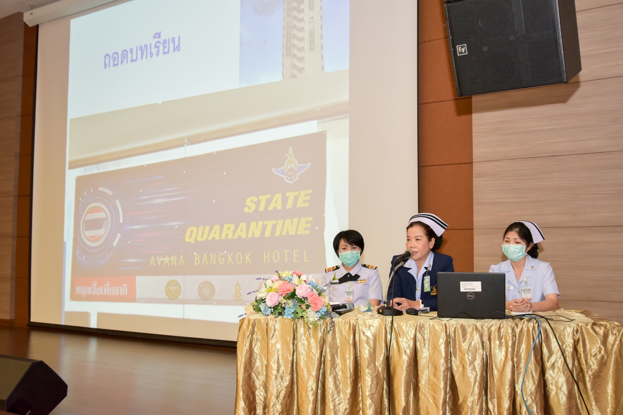 ๔ ส.ค. ๖๓ น.อ.หญิง กรองทิพย์ จันทร์อินทร์ รอง ผอ.รพ.สมเด็จพระปิ่นเกล้า พร. ฝ่ายการพยาบาล เป็นประธานเปิดการนำเสนอ “ประสบการณ์ในการปฏิบัติงานใน State Quarantine ที่ผ่านมา” เพื่อเป็นการเพิ่มสมรรถนะพยาบาลในการปฎิบัติงานได้อย่างมีประสิทธิภาพ