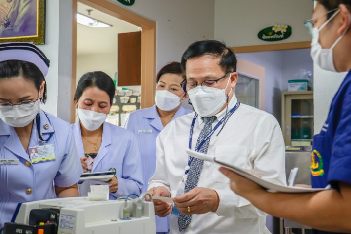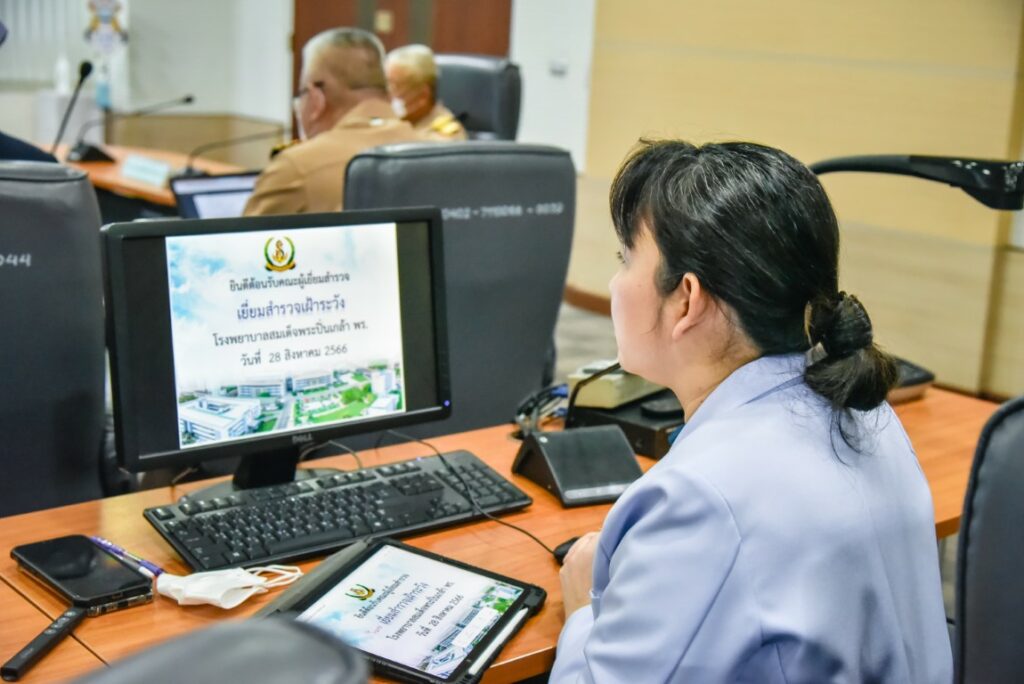 เมื่อ ๒๘ ส.ค.๖๖ พล.ร.ต.ณัฐ อิศรางกูร ณ อยุธยา ผอ.รพ.สมเด็จพระปิ่นเกล้า พร. ให้การต้อนรับ นายแพทย์มนตรี ลักษณ์สุวงศ์ และ อาจารย์โกเมธ นาควรรณกิจ จากสถาบันรับรองคุณภาพสถานพยาบาล (องค์การมหาชน) (สรพ.) ในการเข้าเยี่ยมสำรวจรพ.สมเด็จพระปิ่นเกล้า พร. เพื่อเฝ้าระวังหลังต่ออายุการรับรองกระบวนการคุณภาพ ณ ห้องประชุมพลเรือเอก หม่อมเจ้าปุสาณ สวัสดิวัตน์ อาคารผู้ป่วยนอก ชั้น ๓ รพ.สมเด็จพระปิ่นเกล้า พร. / รพ.สมเด็จพระปิ่นเกล้าฯ / By ข่าวผู้บังคับบัญชา จำนวนคนดู : 12