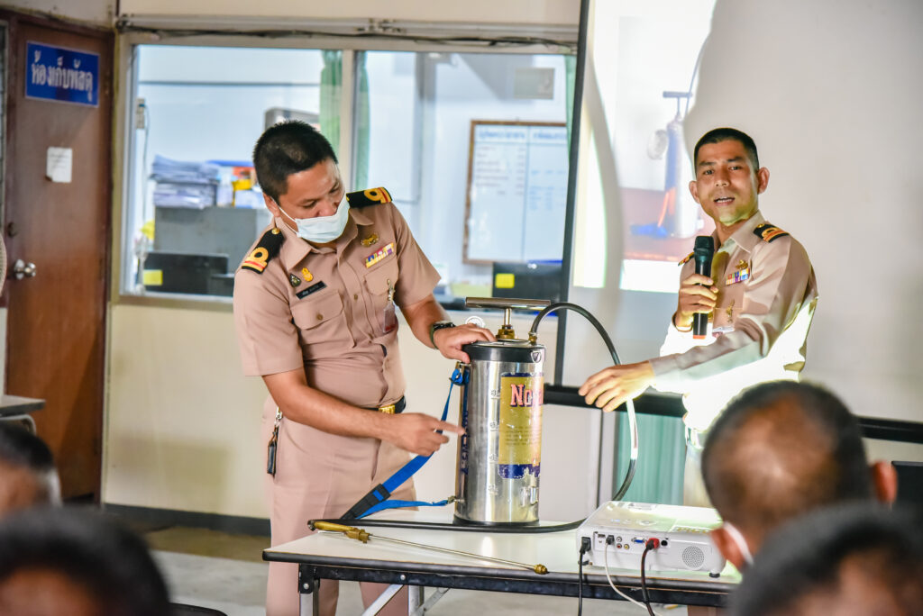 เมื่อ ๒๙ ส.ค.๖๖ กลุ่มงานอาชีวเวชกรรม รพ.สมเด็จพระปิ่นเกล้า พร. จัดกิจกรรมอบรม “พ่นหมอกควันปลอดภัย ห่วงใยสุขภาพคนทำงาน” ให้แก่เจ้าหน้าที่หน่วยงานโยธาสนาม กลุ่มงานบริการ รพ.ฯ เพื่อให้มีความรู้ความเข้าใจในการใช้เครื่องพ่นหมอกควัน ทั้งภาคทฤษฎี และปฏิบัติที่ถูกต้องรวมถึงผู้ปฏิบัติงานได้รับความปลอดภัย โดยมี บุคลากรจากกองเวชกรรมป้องกัน กรมแพทย์ทหารเรือ เป็นวิทยากรบรรยายและให้ความรู้ ณ หน่วยงานโยธาสนาม รพ.สมเด็จพระปิ่นเกล้า พร. / รพ.สมเด็จพระปิ่นเกล้าฯ / By ข่าวผู้บังคับบัญชา จำนวนคนดู : 23