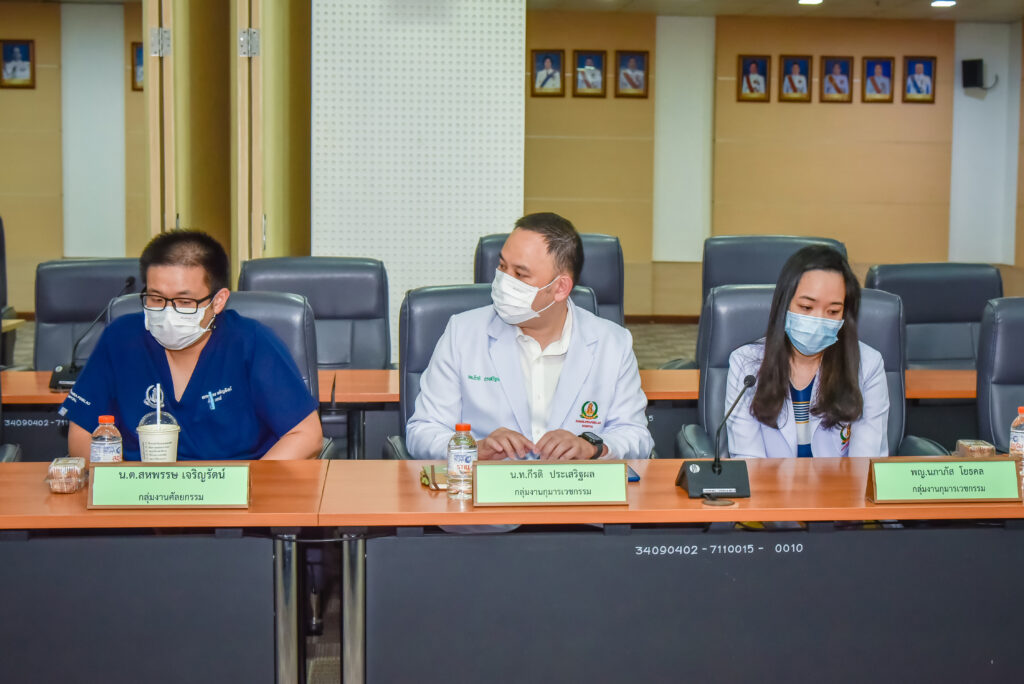 เมื่อ ๓๑ ส.ค.๖๖ พล.ร.ต.ณัฐ อิศรางกูร ณ อยุธยา ผอ.รพ.สมเด็จพระปิ่นเกล้า พร. และ พล.ร.ต.หญิง ภาวิกา ธรรมโน ที่ปรึกษา ผอ.รพ.ฯ ด้านแพทยศาสตรศึกษา ให้การต้อนรับคณะอาจารย์ จากแพทยศาสตร์ศิริราชพยาบาล ในการตรวจเยี่ยมและประเมินสถานฝึกปฏิบัติงานโรงพยาบาลร่วมสอน ณ ห้องประชุมพลเรือเอก หม่อมเจ้าปุสาณ สวัสดิวัตน์ อาคารผู้ป่วยนอก ชั้น ๓ รพ.สมเด็จพระปิ่นเกล้า พร. / รพ.สมเด็จพระปิ่นเกล้าฯ / By ข่าวผู้บังคับบัญชา จำนวนคนดู : 11