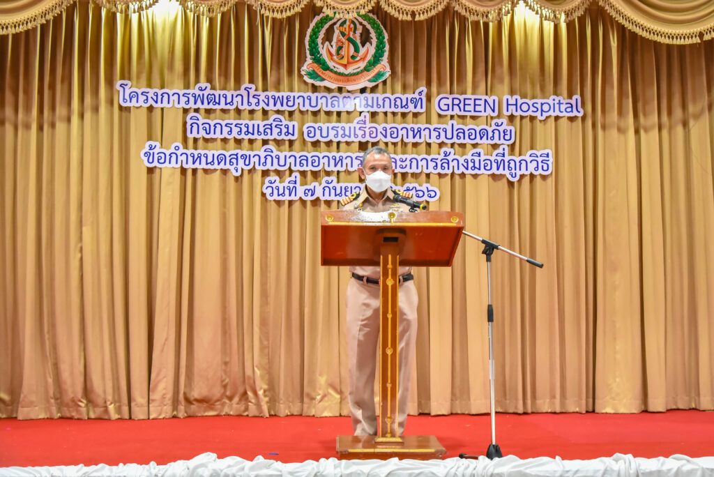 เมื่อ ๗ ก.ย.๖๖ น.อ.ปิยะวัฒน์ วงษ์วานิช รอง ผอ.รพ.สมเด็จพระปิ่นเกล้า พร. ฝ่ายบริหาร เป็นประธานเปิดโครงการพัฒนาโรงพยาบาลตามเกณฑ์ GREEN Hospital อบรมเรื่อง “อาหารปลอดภัย ข้อกำหนดสุขาภิบาลอาหารแฃะการล้างมือที่ถูกวิธี” ให้แก่ ผู้ประกอบการร้านขายอาหารและเครื่องดื่มภายในโรงพยาบาล จัดโดย คณะทำงาน GREEN Hospital รพ.ฯ ณ ห้องประพัฒน์ศรี สโมสร รพ.สมเด็จพระปิ่นเกล้า พร.