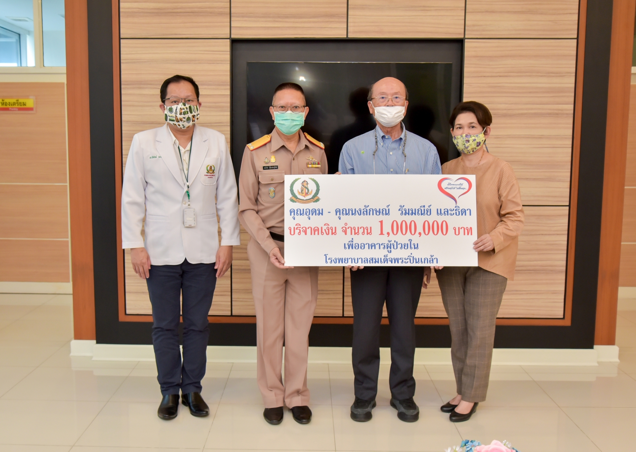 พล.ร.ต.ธนรักษ์ เอี่ยวสานุรักษ์ ผอ.รพ.สมเด็จพระปิ่นเกล้า พร. รับมอบเงินบริจาค จำนวน ๑,๐๐๐,๐๐๐ บาท จากคุณอุดม – คุณนงลักษณ์ รัมมณีย์ และธิดา เพื่ออาคารผู้ป่วยใน รพ.ฯ ณ ห้องรับรองพิเศษ ชั้น ๒ อาคารผู้ป่วยนอก โรงพยาบาลสมเด็จพระปิ่นเกล้า กรมแพทย์ทหารเรือ เมื่อวันที่ ๕ สิงหาคม ๒๕๖๓