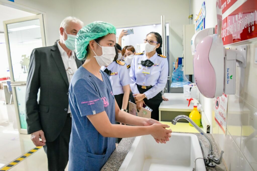 เมื่อ ๓๑ ต.ค.๖๖ น.อ.เรวัตร กิจณรงค์ รอง ผอ.รพ.สมเด็จพระปิ่นเกล้า พร. ฝ่ายบริหาร พร้อมด้วยคณะทำงานส่งเสริมสุขอนามัยของมือ รพ.ฯ ให้การต้อนรับผู้เชี่ยวชาญจาก Asia Pacific Society of Infection Control (APSIC) เพื่อรับการตรวจประเมินรอบสุดท้ายในการก้าวสู่ความเป็นเลิศด้านสุขอนามัยของมือระดับภูมิภาคเอเชียแปซิฟิก (Hand Hygiene Excellence Award 2024) ณ ห้องประชุมพลเรือเอก หม่อมเจ้าปุสาณ สวัสดิวัตน์ อาคารผู้ป่วยนอก ชั้น ๓ รพ.สมเด็จพระปิ่นเกล้า พร. / รพ.สมเด็จพระปิ่นเกล้าฯ / By ข่าวผู้บังคับบัญชา จำนวนคนดู : 9