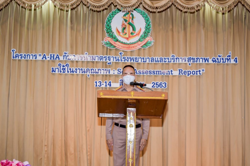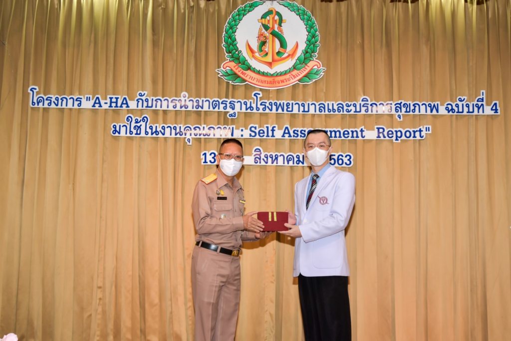 พล.ร.ต.ธนรักษ์ เอี่ยวสานุรักษ์ ผอ.รพ.สมเด็จพระปิ่นเกล้า พร. เป็นประธานเปิดโครงการอบรมเชิงปฏิบัติการ ” A-HA กับการนำมาตรฐานโรงพยาบาลและบริการสุขภาพ ฉบับที่ ๔ มาใช้ในงานคุณภาพ : Self Assessment Report ” โดยมี พ.ต.อ.กฤติชาติ กำจรปรีชา จากโรงพยาบาลตำรวจ สำนักงานตำรวจแห่งชาติ เป็นวิทยากรบรรยาย ณ ห้องประชุมประพัฒน์ศรี สโมสร โรงพยาบาลสมเด็จพระปิ่นเกล้า กรมแพทย์ทหารเรือ เมื่อวันที่ ๑๓ สิงหาคม ๒๕๖๓