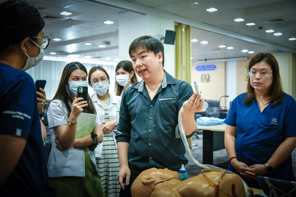 เมื่อ ๑๖ ก.พ.๖๗ น.อ.ชลี บัวขำ รอง ผอ.ศูนย์แพทยศาสตรศึกษาชั้นคลินิก รพ.สมเด็จพระปิ่นเกล้า พร. เป็นประธานเปิดกิจกรรมอบรมเชิงปฏิบัติการ เรื่อง “ULTRASOUND – GUIDED CENTRAL VENOUS CATHETER PLACEMENT WORKSHOP” โดยมี อาจารย์แพทย์ แพทย์ประจำบ้าน แพทย์ใช้ทุน และนิสิตแพทย์ เข้าร่วมการอบรมฯ ณ ห้องประชุม พลเรือเอก หม่อมเจ้าปุสาณ สวัสดิวัตน์ อาคารผู้ป่วยนอก ชั้น ๓ รพ.สมเด็จพระปิ่นเกล้า พร. / รพ.สมเด็จพระปิ่นเกล้าฯ / By ข่าวผู้บังคับบัญชา จำนวนคนดู : 8