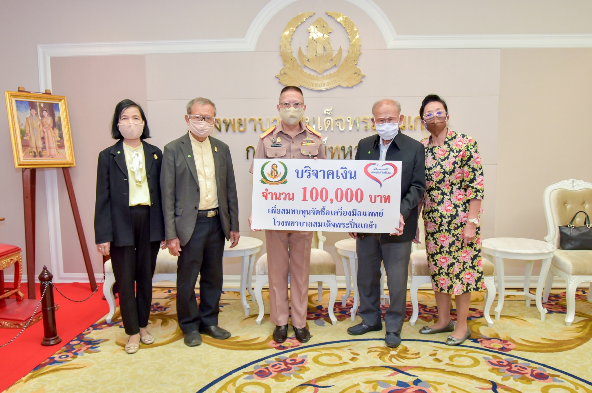 พล.ร.ต.ธนรักษ์ เอี่ยวสานุรักษ์ ผอ.รพ.สมเด็จพระปิ่นเกล้า พร. รับมอบเงินบริจาค จำนวน ๑๐๐,๐๐๐ บาท จาก ดร.แสวง – คุณนิตยา บุญญาสุวัฒน์ เพื่อสงเคราะห์ผู้ป่วย รพ.ฯ ณ ห้องรับรอง สำนักงานผู้อำนวยการ โรงพยาบาลสมเด็จพระปิ่นเกล้า กรมแพทย์ทหารเรือ เมื่อวันที่ ๓๑ สิงหาคม ๒๕๖๓