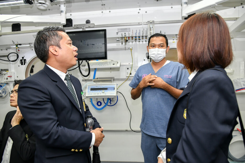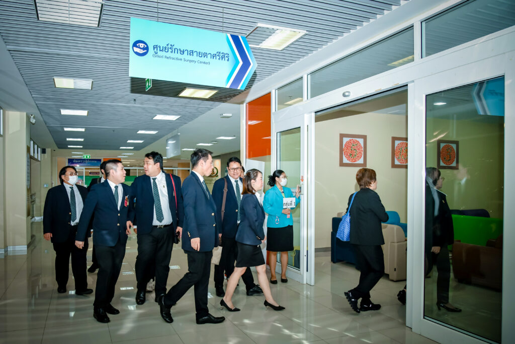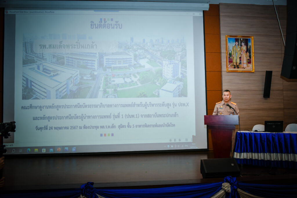 เมื่อ ๒๔ พ.ค.๖๗ พล.ร.ต.วสุธา ข่ายแก้ว ผอ.รพ.สมเด็จพระปิ่นเกล้า พร. ให้การต้อนรับคณะผู้เข้ารับการอบรมหลักสูตรประกาศนียบัตรธรรมาภิบาลทางการแพทย์สำหรับผู้บริหารระดับสูง รุ่นพิเศษ ๑ (ปธพ.Executive) และหลักสูตรประกาศนียบัตรผู้นำทางการแพทย์ รุ่นที่ ๑ (ปนพ.๑) พร้อมคณาจารย์จากสถาบันพระปกเกล้า ร่วมกับ สถาบันมหิตลาธิเบศร ในโอกาสเข้าศึกษาดูงานพร้อมรับฟังการบรรยายและเยี่ยมชมศูนย์รักษาสายตาศรีศิริ ศูนย์เวชศาสตร์ความดันบรรยากาศสูง และอาศรมหมอพร อาคารเรียนรู้เรื่องการแพทย์บูรณาการ รพ.สมเด็จพระปิ่นเกล้า พร. ณ ห้องประชุมพลเรือตรี เล็ก สุมิตร อาคารพิเคราะห์และบำบัดโรค ชั้น ๕ รพ.สมเด็จพระปิ่นเกล้า พร. / รพ.สมเด็จพระปิ่นเกล้าฯ / By ข่าวผู้บังคับบัญชา จำนวนคนดู : 2