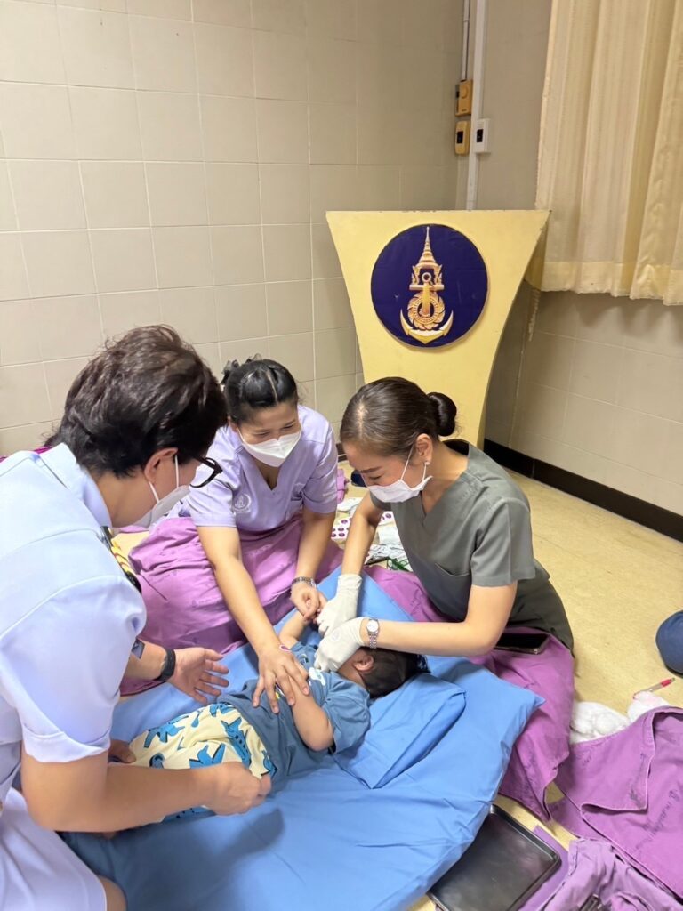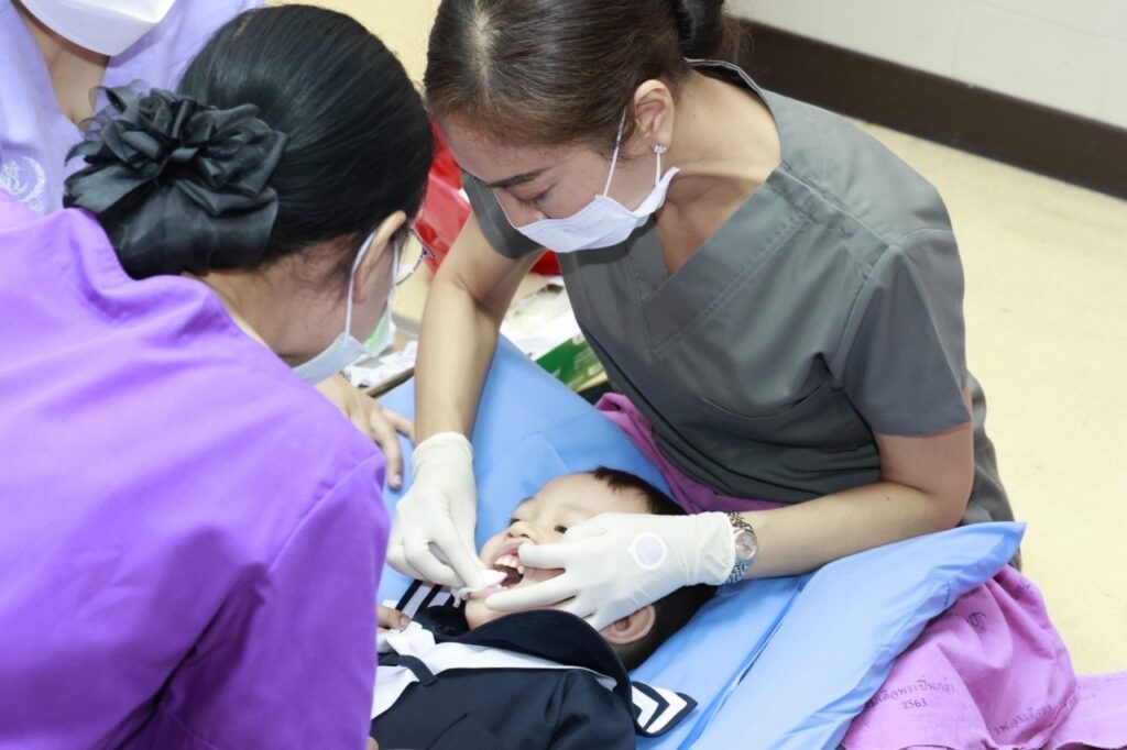 เมื่อ ๓๑ พ.ค.๖๗ สำนักงานสร้างเสริมสุขภาพและการฟื้นฟู กลุ่มงานอาชีวเวชกรรม ร่วมกับ กลุ่มงานทันตกรรม รพ.สมเด็จพระปิ่นเกล้า พร. จัดกิจกรรม “ฟันสวยยิ้มใสประจำปี ๒๕๖๗” โดยมีกิจกรรมให้ความรู้เรื่องการดูแลฟัน สอนแปรงฟันให้กับครูพี่เลี้ยง ตรวจฟัน เคลือบคลอไรด์ป้องกันฟันผุ ให้กับเด็กๆ วัย ๑ – ๔ ปี ณ สถานรับเลี้ยงเด็กปฐมวัยกองทัพเรือ รพ.สมเด็จพระปิ่นเกล้า พร.