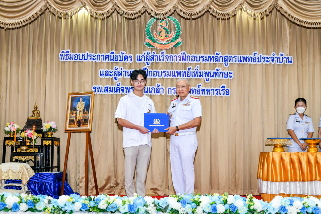 เมื่อ ๓๑ พ.ค.๖๗ พล.ร.ท.ณัฐ อิศรางกูร ณ อยุธยา จก.พร. เป็นประธานพิธีมอบประกาศนียบัตรแก่ผู้สำเร็จการฝึกอบรมหลักสูตรแพทย์ประจำบ้าน และผู้ผ่านการฝึกอบรมแพทย์เพิ่มพูนทักษะ ประจำปีการศึกษา ๒๕๖๖ โดย ศูนย์แพทยศาสตรศึกษา รพ.สมเด็จพระปิ่นเกล้า พร. ณ ห้องประพัฒน์ศรี สโมสร รพ.สมเด็จพระปิ่นเกล้า พร. / รพ.สมเด็จพระปิ่นเกล้าฯ / By ข่าวผู้บังคับบัญชา จำนวนคนดู : 9