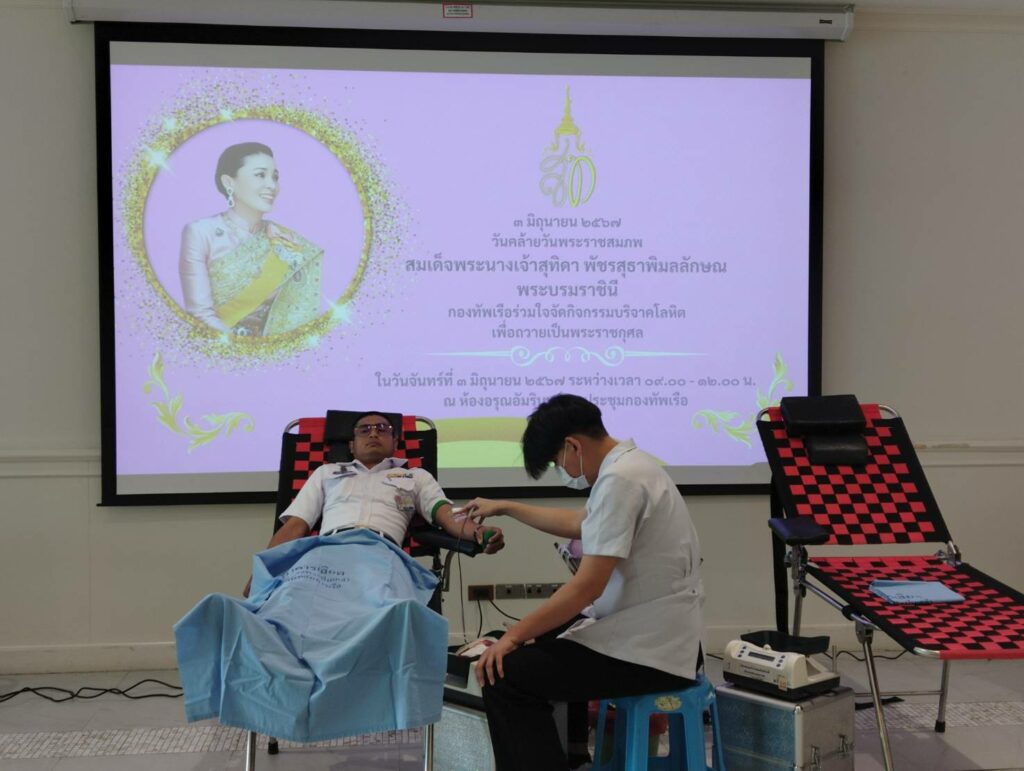 เมื่อ ๓ มิ.ย.๖๗ แผนกคลังเลือด กลุ่มงานพยาธิวิทยา รพ.สมเด็จพระปิ่นเกล้า พร. ออกหน่วยรับบริจาคโลหิตเนื่องในวันคล้ายวันพระราชสมภพสมเด็จพระนางเจ้าสุทิดา พัชรสุธาพิมลลักษณ พระบรมราชินี ๓ มิถุนายน ๒๕๖๗  โดยมี ข้าราชการ ลูกจ้างและพนักงาน สังกัด ทร. ณ ห้องอรุณอัมรินทร์ หอประชุมกองทัพเรือ